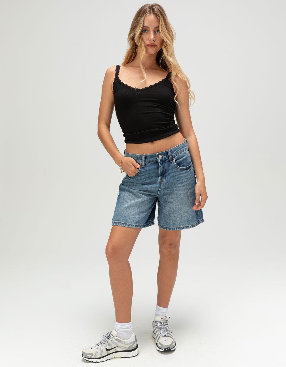 BLACK. Heart & Hips Lace Trim V-Neck Cami. The Heart & Hips Lace Trim V-Neck Cami brings a fresh, feminine twist to a classic staple. Made from a soft polyester-spandex blend, this cami features a ribbed fabric that offers a comfortable, body-skimming fit. The V-neckline and delicate lace trim at the neckline and straps add stylish detail, making it an easy pick for layering or wearing on its own. Whether paired with denim or tucked into a skirt, this cami is a versatile must-have for your wardrobe. 96% Polyester 4% Spandex. Hand wash. Imported.
