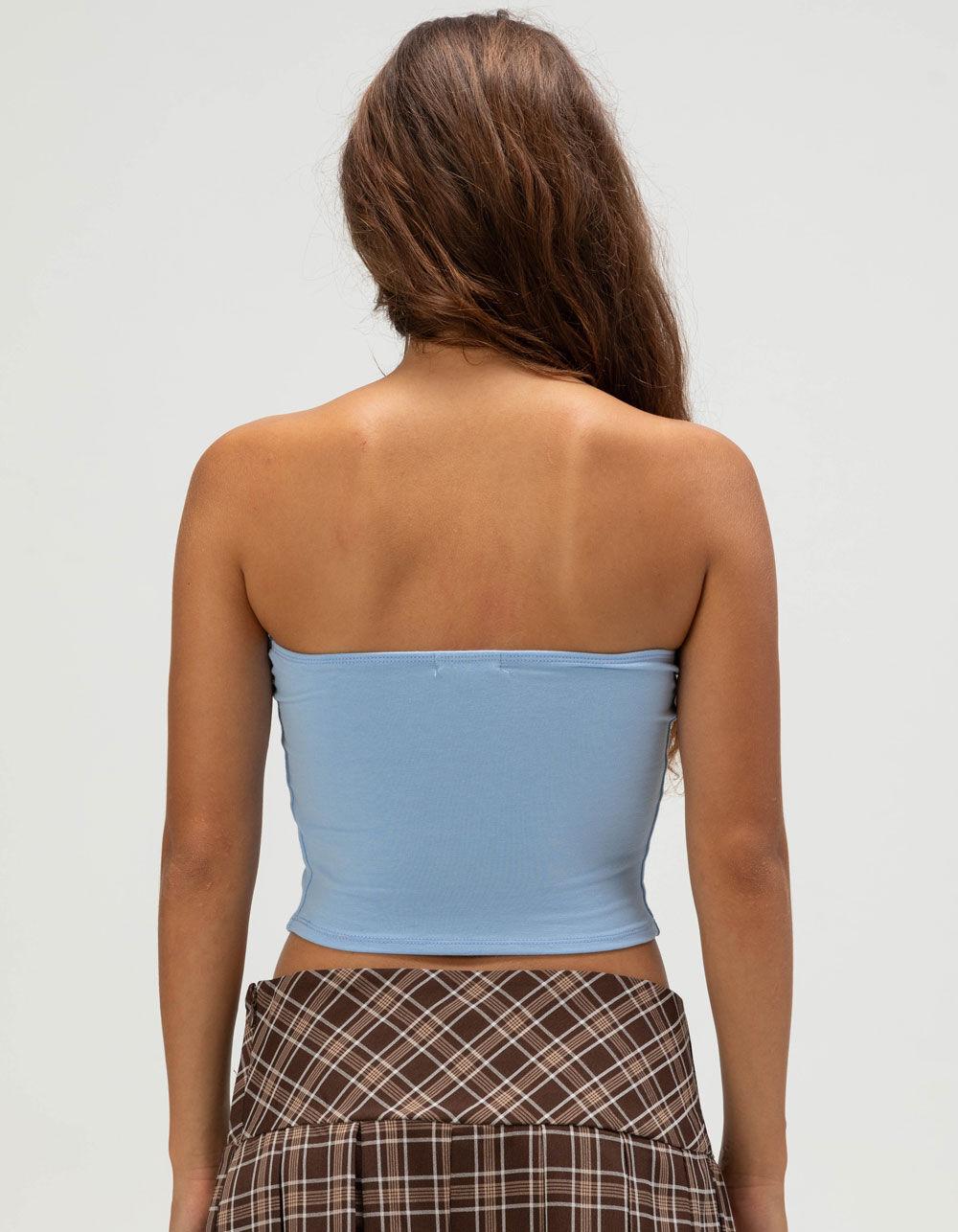 BLUE. Heart & Hips Tube Top. Keep it sleek and simple with the Heart & Hips Tube Top, a stylish staple for warm-weather days and layered looks. This solid color, cropped tube top is made from a soft and stretchy cotton-rayon-spandex blend that hugs your shape while keeping you comfortable. With its strapless, sleeveless design and easy pull-on fit, it's perfect for pairing with high-rise jeans, skirts, or layered under a jacket. Whether you're dressing up or down, this tube top delivers effortless style with a minimalist edge. 60% Cotton 35% Rayon 5% Spandex. Machine wash. Imported.