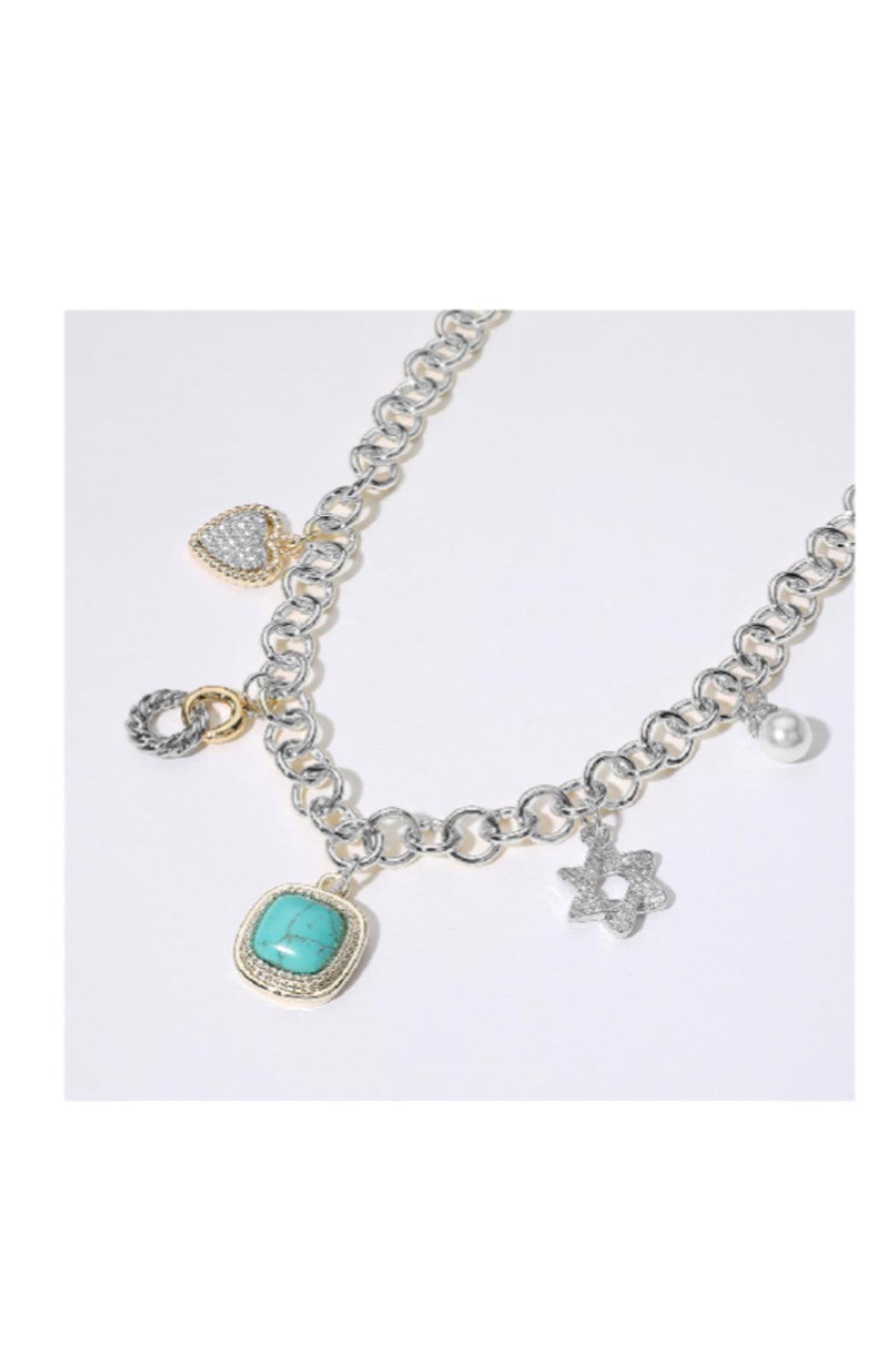 Heart Jewish Star Pearl Western Turquoise Charm Necklace
