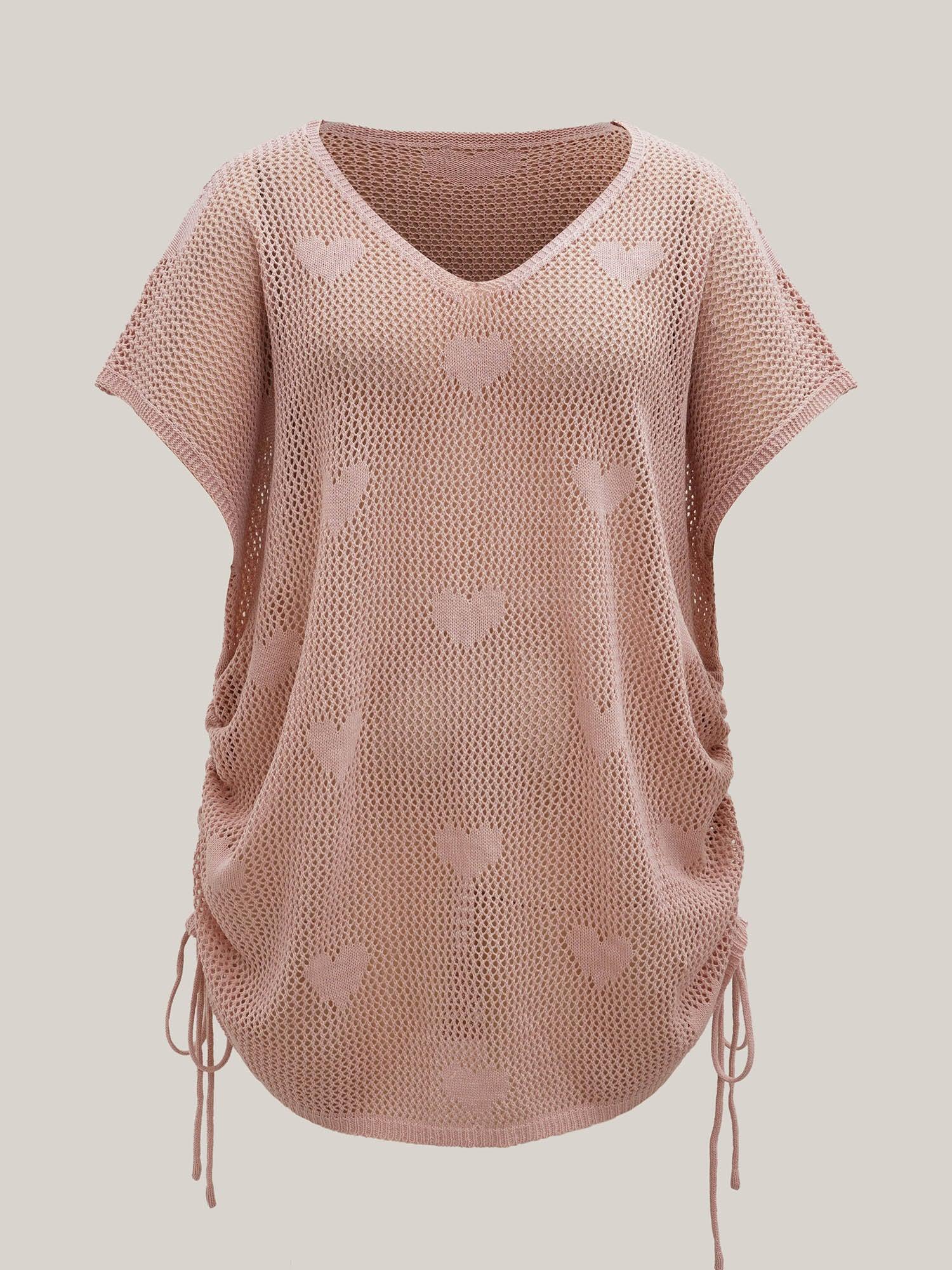 Shop Heart Pattern Drawstring Textured Sheer Swim Cover-Up now and redefine your style with confidence at BloomChic. Tailored for mid and plus-size women. This trendy Swimwear Women, sizes 10-30. Color:Nudepink;Style:Beach;Cup Type:Non;Neckline:V-neck;Sleeve Type:Drop shoulder sleeve;Prints:Heart-shaped;Details:Cut-Out, Drawstring, Texture;Pocket:No-pocket;Belt:No-belt;Chest pad:No-chest pad;Lining:No-lining;Closure Type:Non