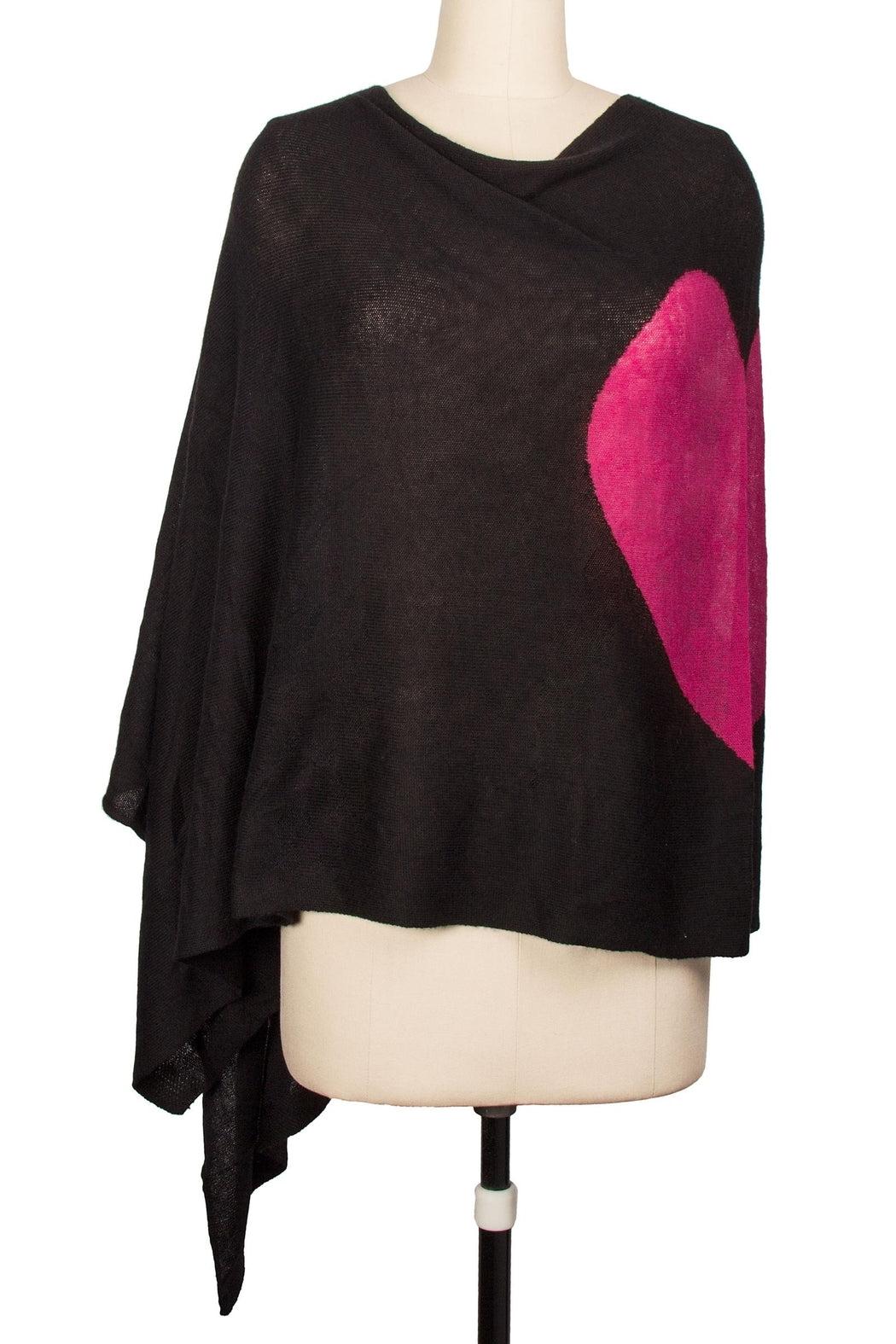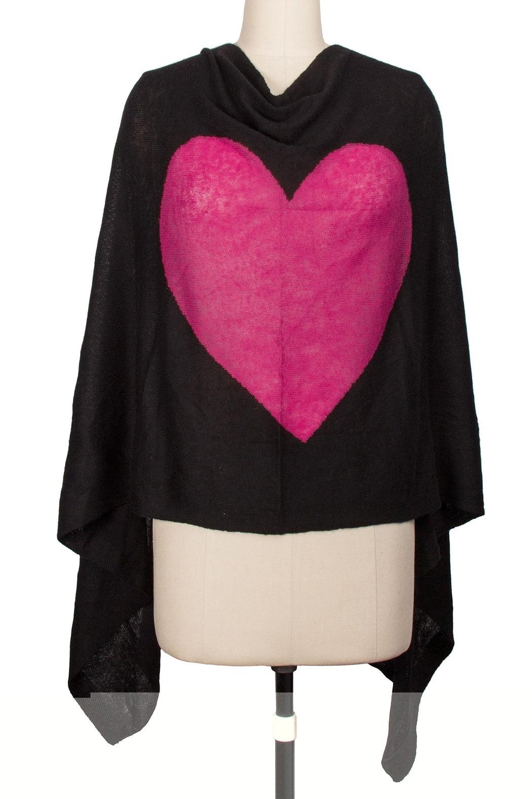 Wear your heart on your sleeve in this adorable poncho. One of our most versatile pieces, it can be worn with the heart to the front, side, or back. Made of silk and cashmere, you'll never want to take this cozy poncho off.