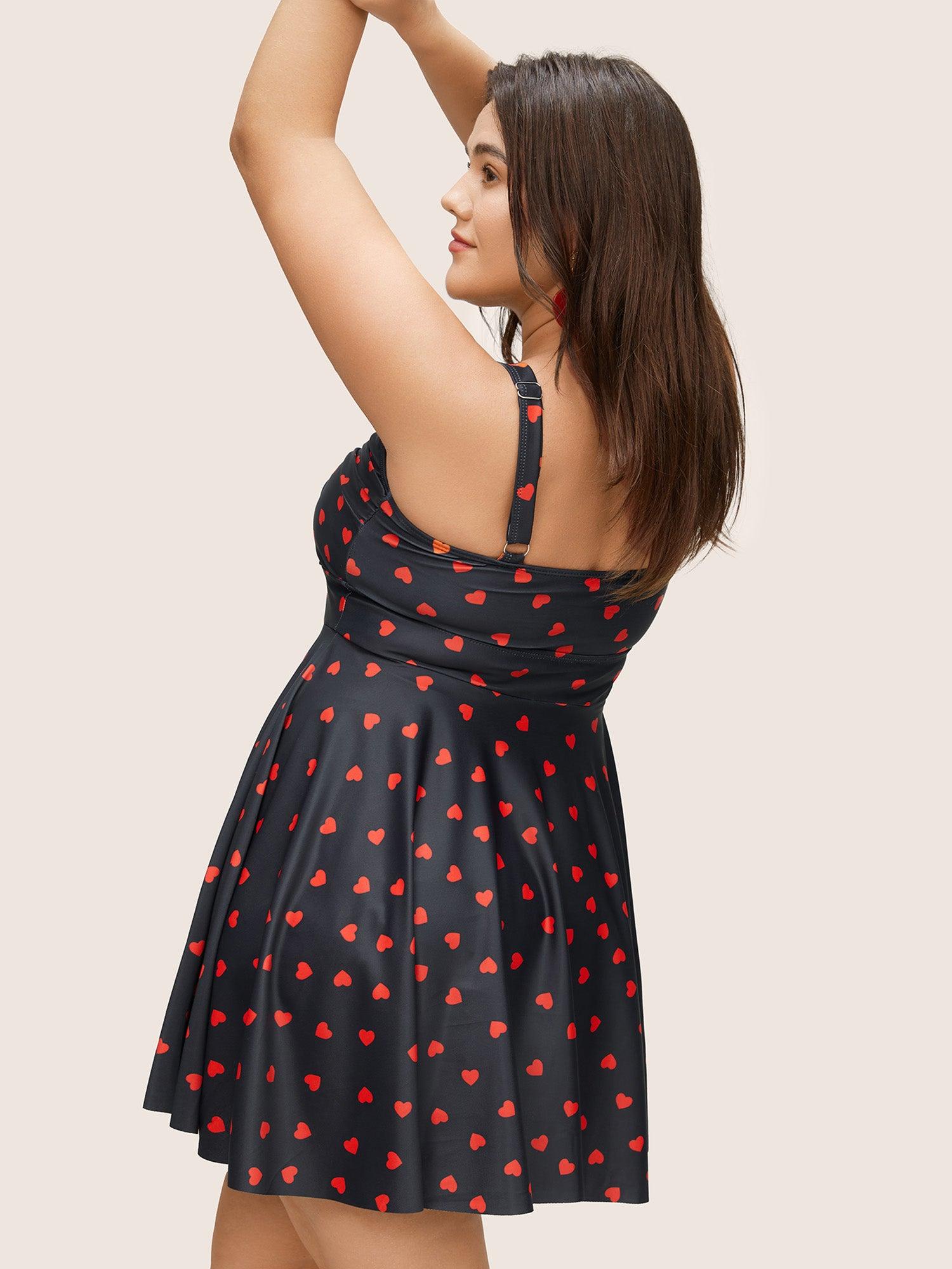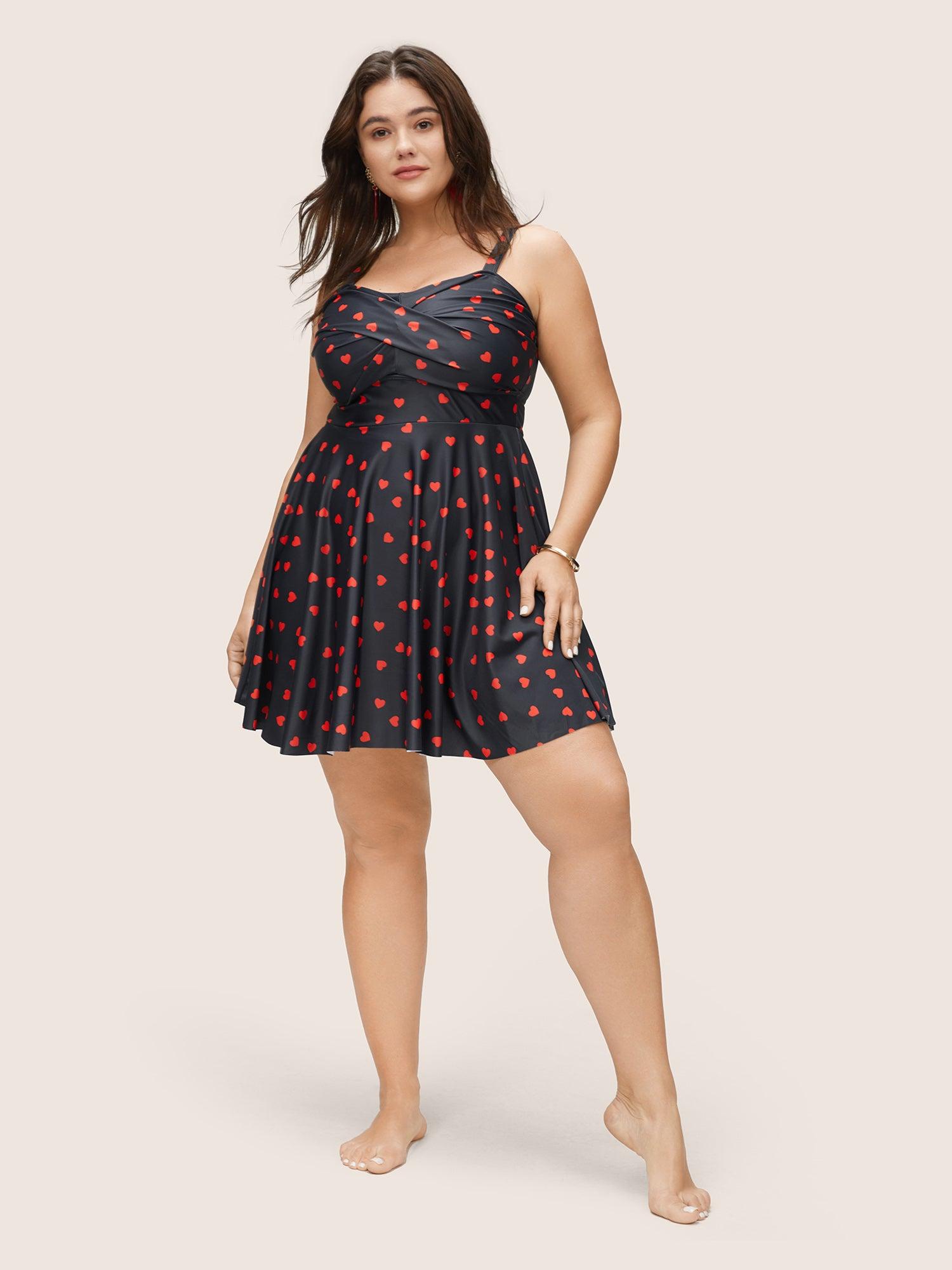 Shop Heart Print Crossover Adjustable Straps Swim Dress now and redefine your style with confidence at BloomChic. Tailored for mid and plus-size women. This trendy Swimwear Women, sizes 10-30. Season:Winter;Color:Black;Bra Type:Full Coverage;Coverage:Full;Waist Design:High Rise;Neckline:Heart neckline;Sleeve Type:Sleeveless;Pattern Type:Heart Print;Pocket:No-pocket;Belt:No-belt;Chest pad:Removable Padding;Lining:Lining