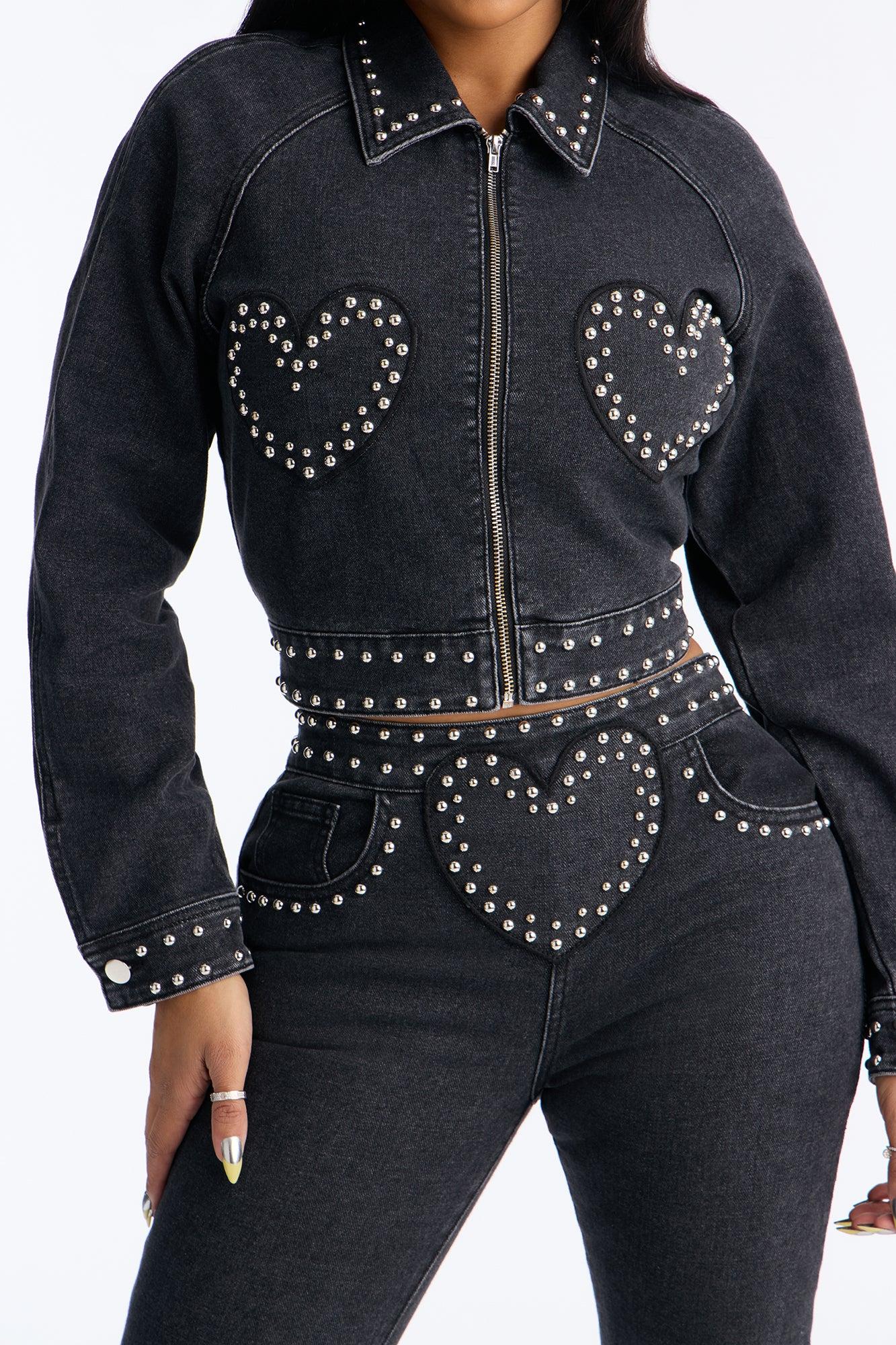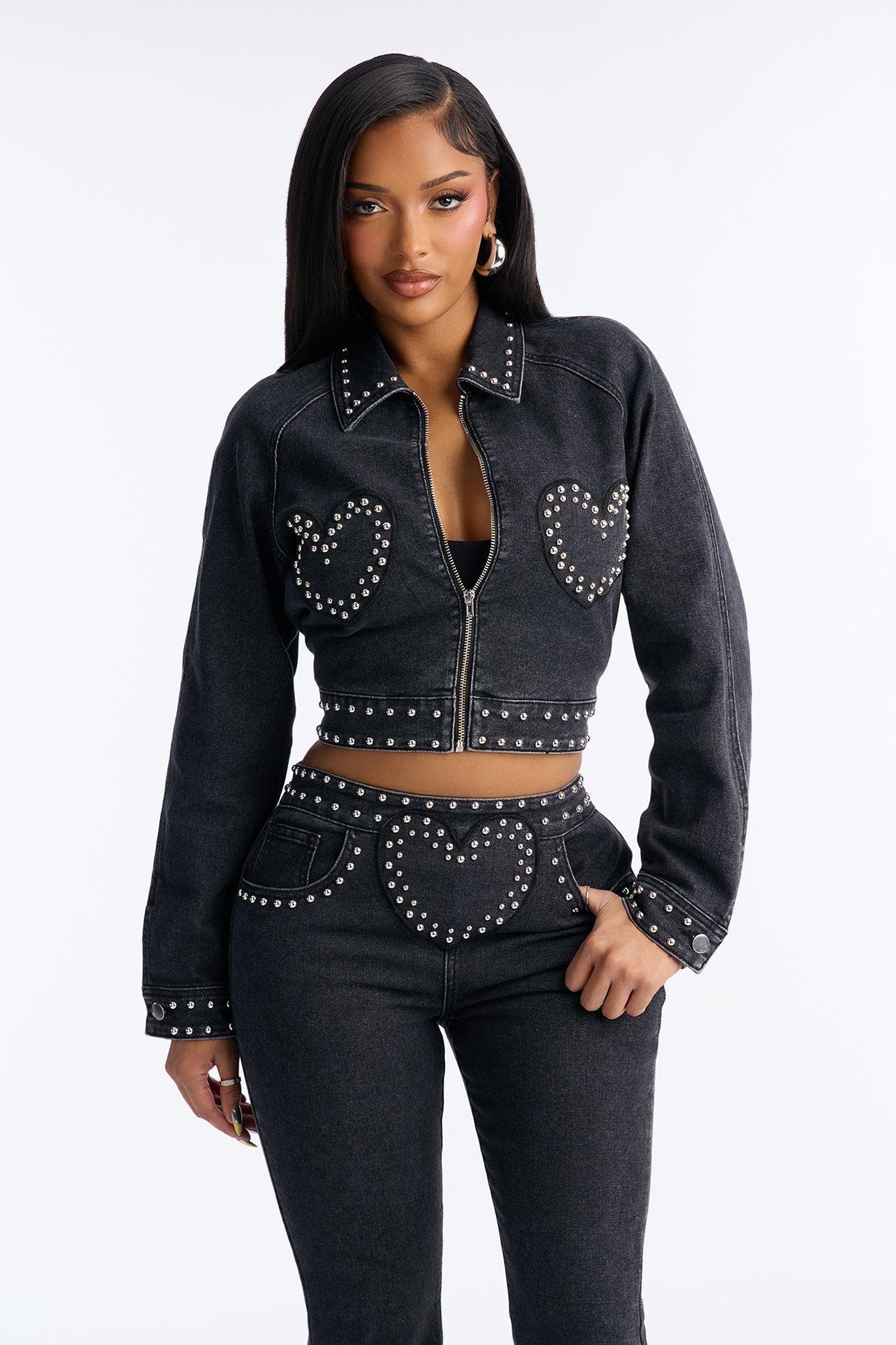 Available In Black. 2 Piece Ensemble Zip Front Jacket And Flare Leg Pant Set Moderate Stretch Inseam 35" Back Zipper On Pant Pockets Self: 68% Cotton 31.5% Polyester 0.5% Spandex Imported California Proposition 65WARNING: Cancer and Reproductive Harm - www.P65Warnings.ca.gov.