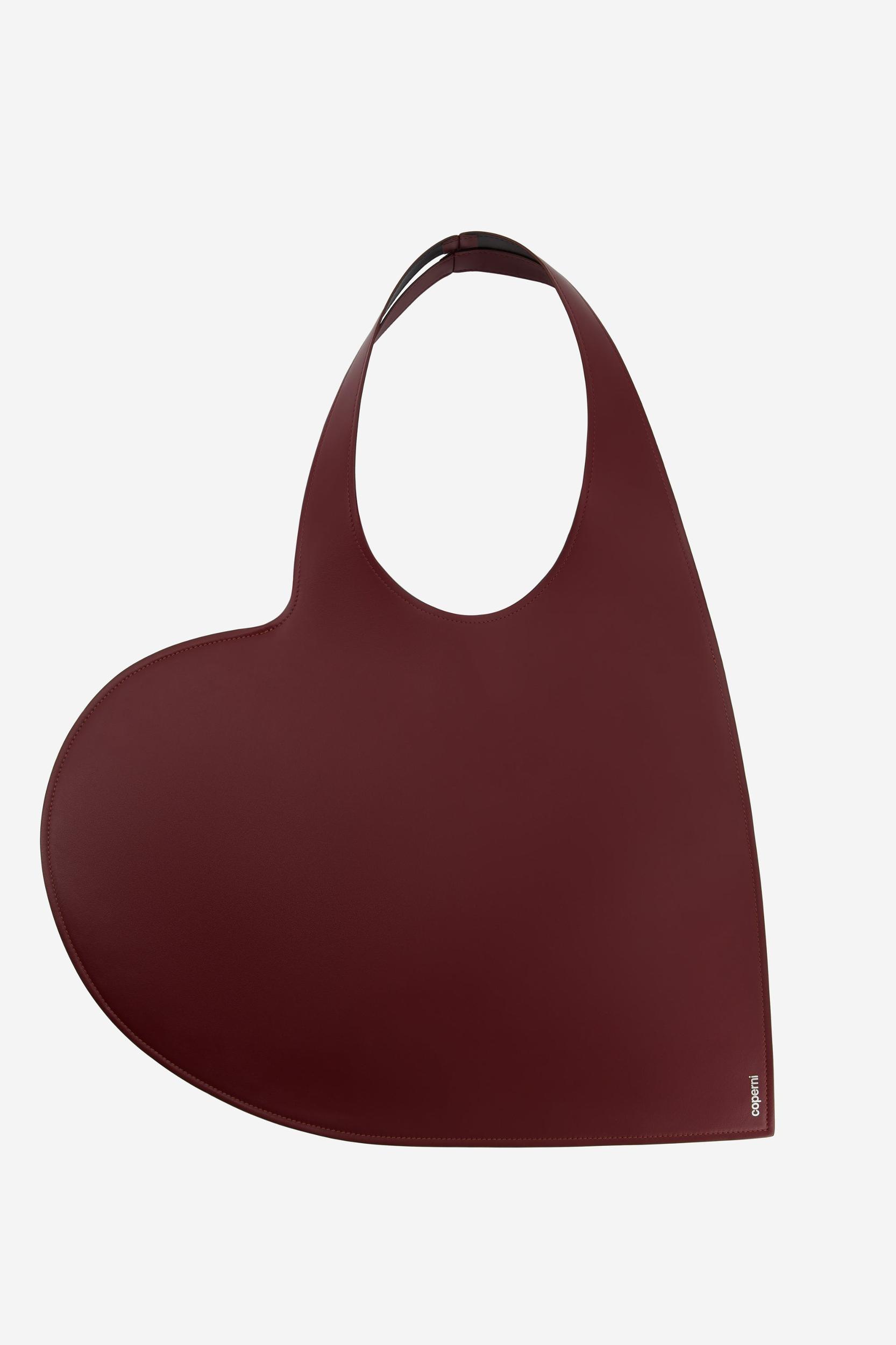 Made from soft Italian leather in a deep berry red tone, the tactile Heart Tote is the perfect every day accessory. Its shape is as charming as it is functional: a spacious interior will fit all your essentials.