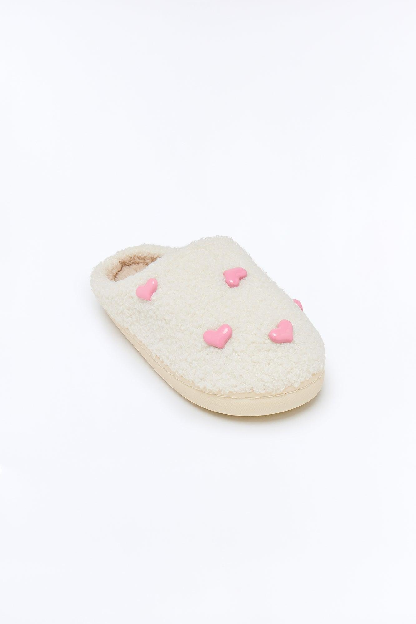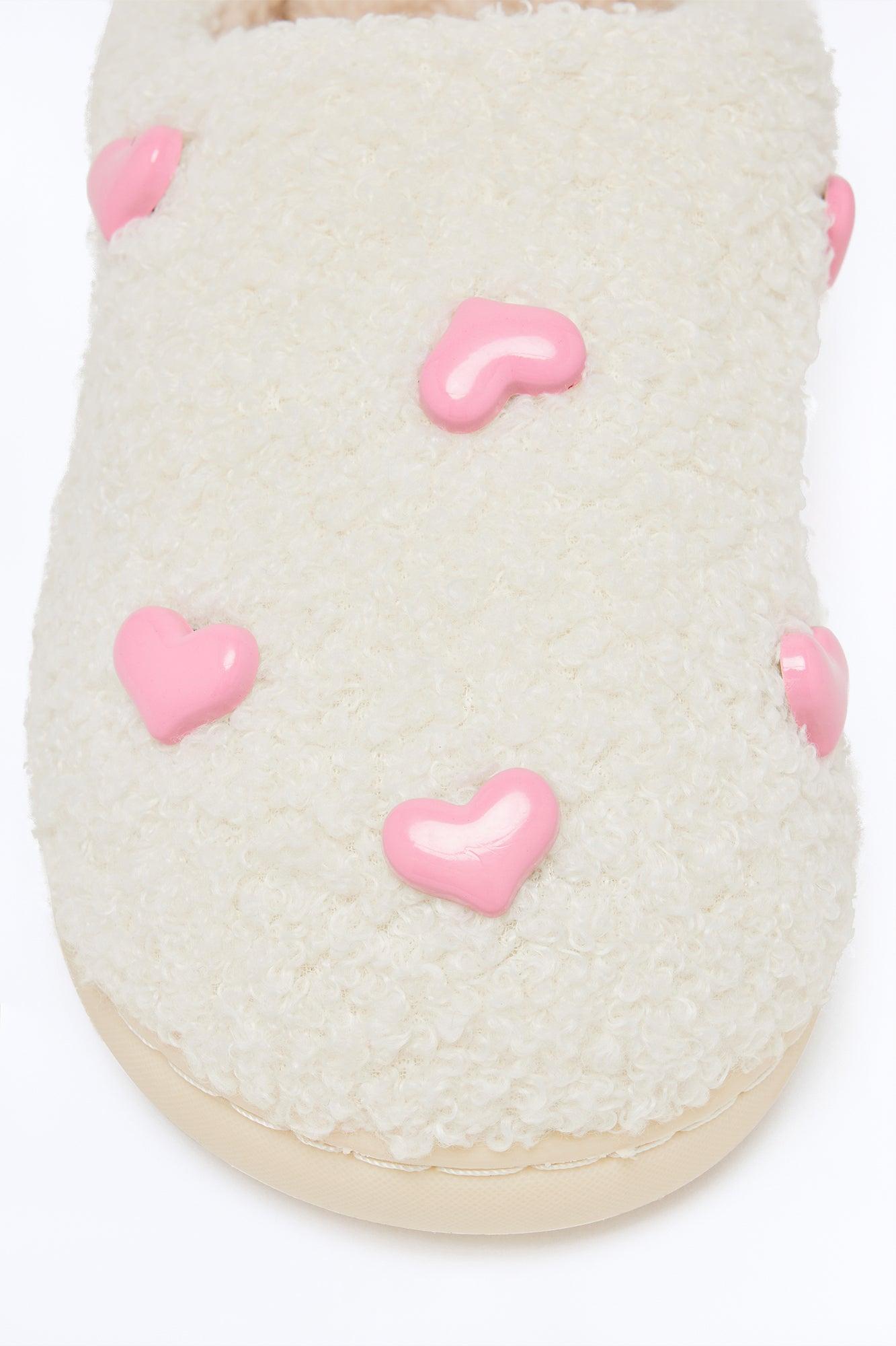 Heartbeat Sherpa Slippers - White/Pink Female