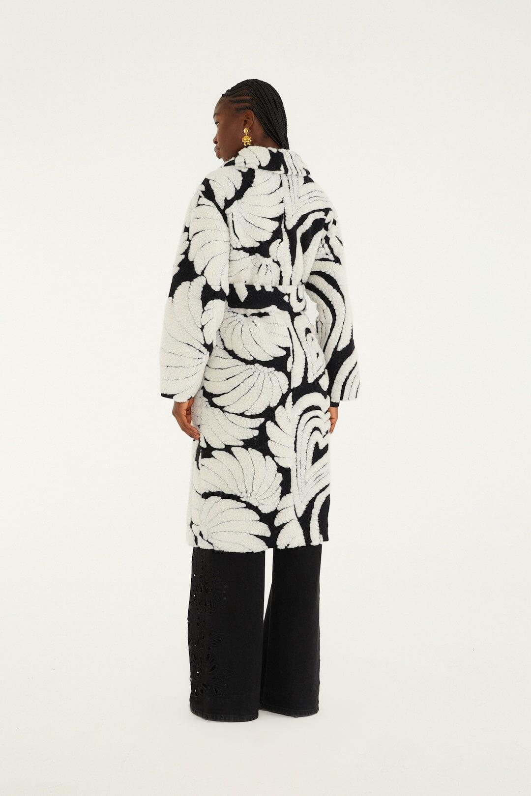 Wrap yourself in the joyful spirit of the Hearts And Bananas Fleece Coat by FARM Rio. This cozy outerwear piece features a playful heart and banana print in vibrant hues, bringing a burst of color to chilly days. Its relaxed silhouette and soft fleece fabric create a warm embrace, while the classic collar neckline adds a touch of effortless charm. Perfect for those who love to wear happiness on their sleeve. Pockets: Welt Pockets Sleeve type: Long Sleeve
