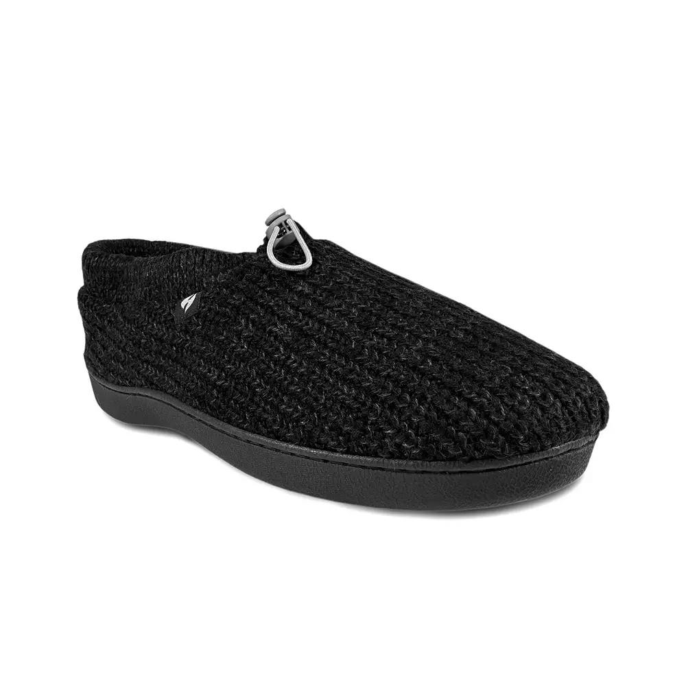 The Heat Holders Mens Heatweaver Knit Adjustable Drawstring Slippers are designed for cold-weather comfort with a stylish knit look and adjustable drawstring for a perfect fit. The Heat Holders Mens Heatweaver Knit Adjustable Drawstring Slippers are designed for cold-weather comfort with a stylish knit look and adjustable drawstring for a perfect fit. FEATURES Knit upper fabric provides exceptional softness Durable sole construction enhances traction Multi-layered foam inner sole for superior comfort, support, and cushioning Plush HeatWeaver lining maximizes warmth and softness Adjustable toggle with bungee drawstring for personalized and secure fitDETAILS Pull on Round toe Closed-back Platform height: 1 in. Toggle closure Polyester upper Polyester lining Polyester insole Foam midsole Foam footbed TPR outsole Non-skid sole Spot clean Imported Size: 9-10. Color: Black. Gender: male. Age Group: adult.