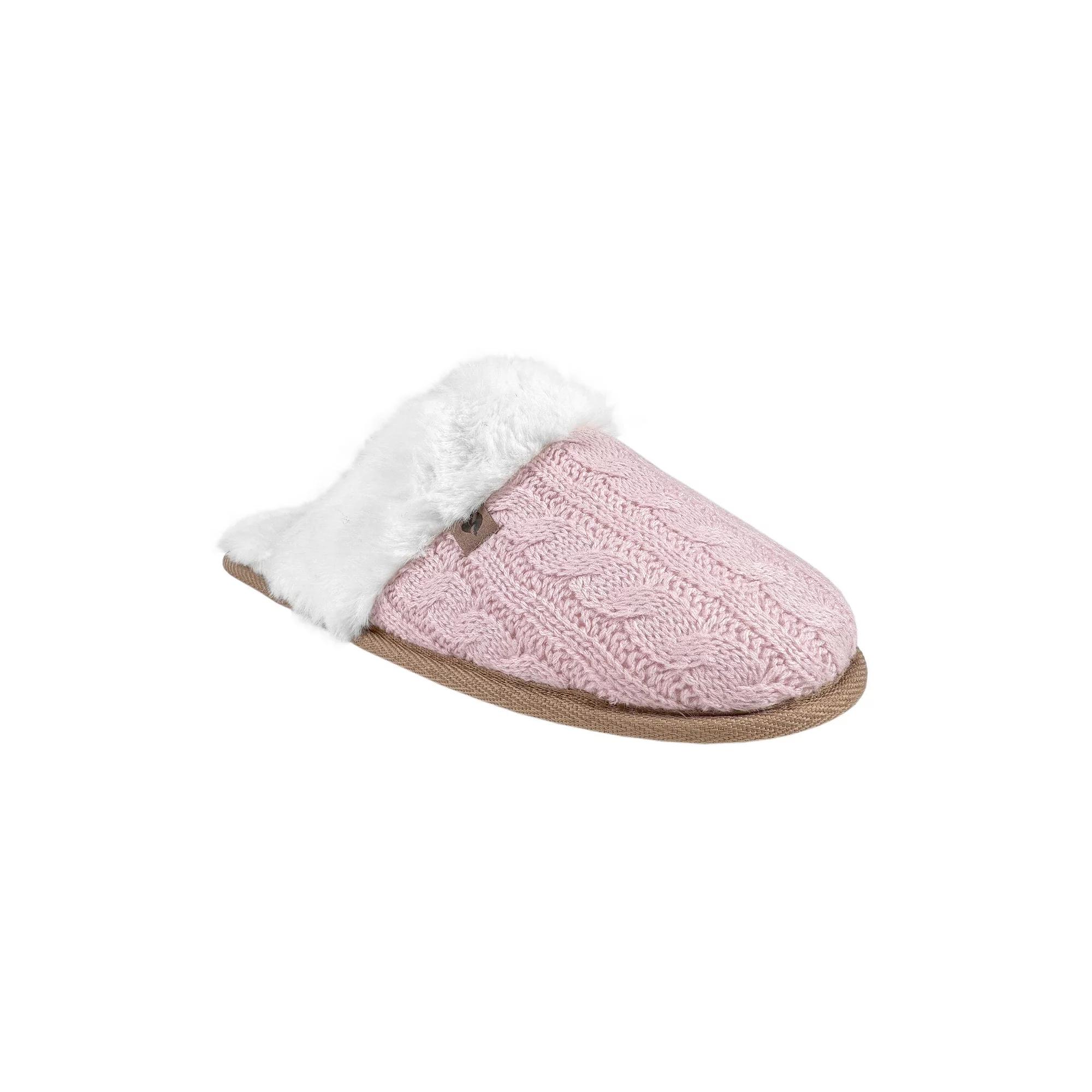 Slip into warmth and style with the Heat Holders Womens Heatweaver Cable Knit Scuff Slippers. The soft Heatweaver lining and easy slip-on design make them perfect for lounging in warmth all day. Slip into warmth and style with the Heat Holders Womens Heatweaver Cable Knit Scuff Slippers. The soft Heatweaver lining and easy slip-on design make them perfect for lounging in warmth all day. FEATURES Cable Knit Upper fabric provides exceptional softness Durable sole construction enhances traction Multi-layered foam inner sole for superior comfort, support, and cushioning Plush HeatWeaver lining maximizes warmth and softness Adjustable toggle with bungee drawstring for personalized and secure fitDETAILS Slip-on Round toe Platform height: 0.5 in. Polyester upper Polyester lining Polyester insole Foam footbed Foam midsole TPR outsole Non-skid sole Spot clean Imported Size: 9-10. Color: Pink. Gender: female. Age Group: adult.