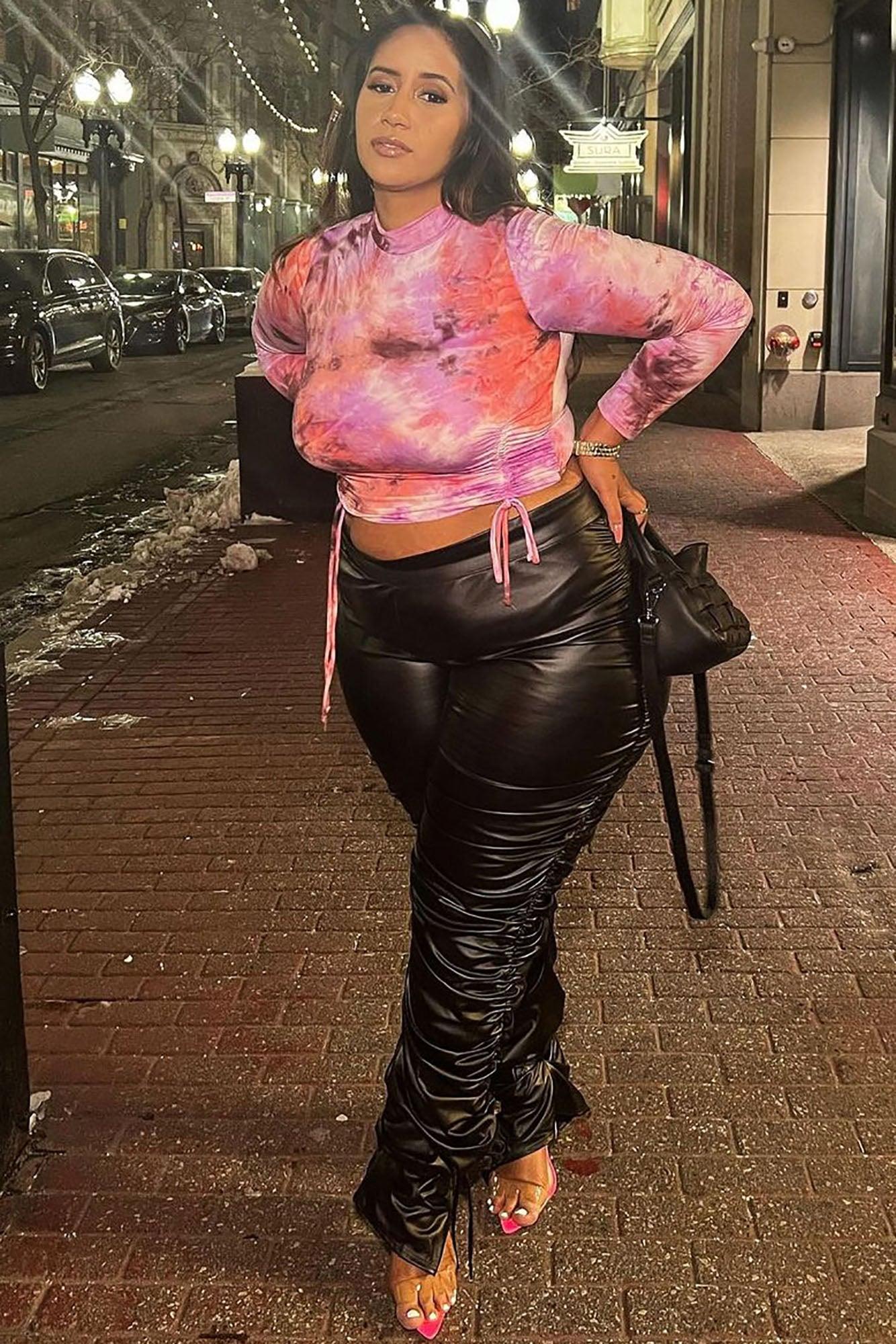 Available In Black. Faux Leather Legging High Waisted Ankle Tie Detailing Elastic Waistband Stacked Design Stretch Fabric 96% Polyester, 4% Spandex. Imported California Proposition 65WARNING: Cancer and Reproductive Harm - www.P65Warnings.ca.gov.