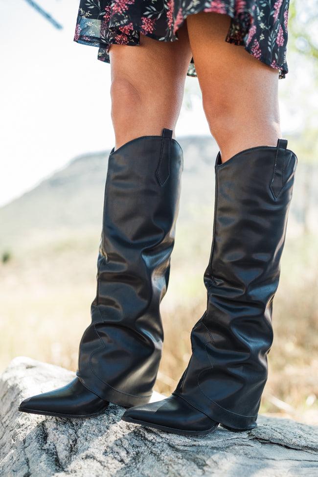 Heather Black Leather Fold Over Boots