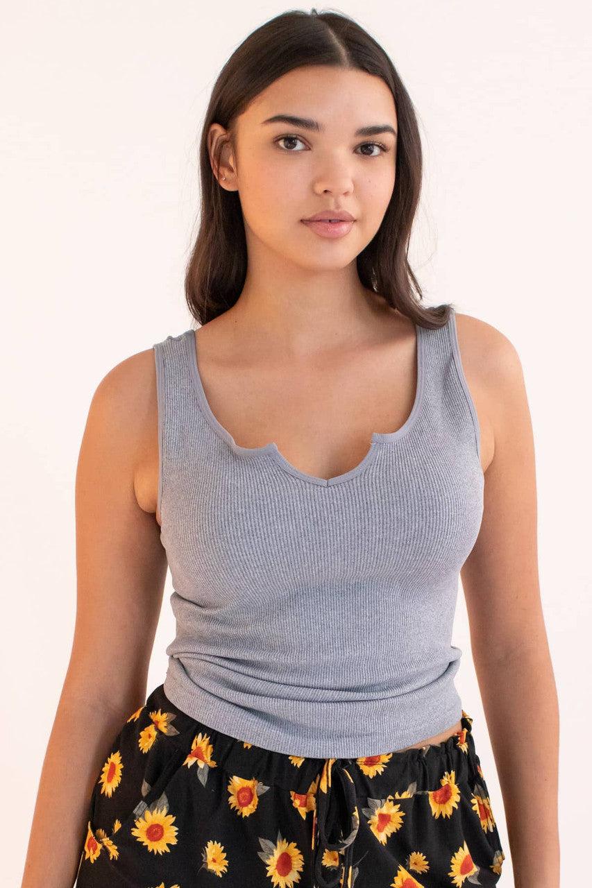 Heather Grey Notched Neck Seamless Tank (Extended Sizes)