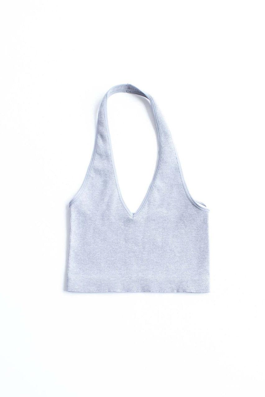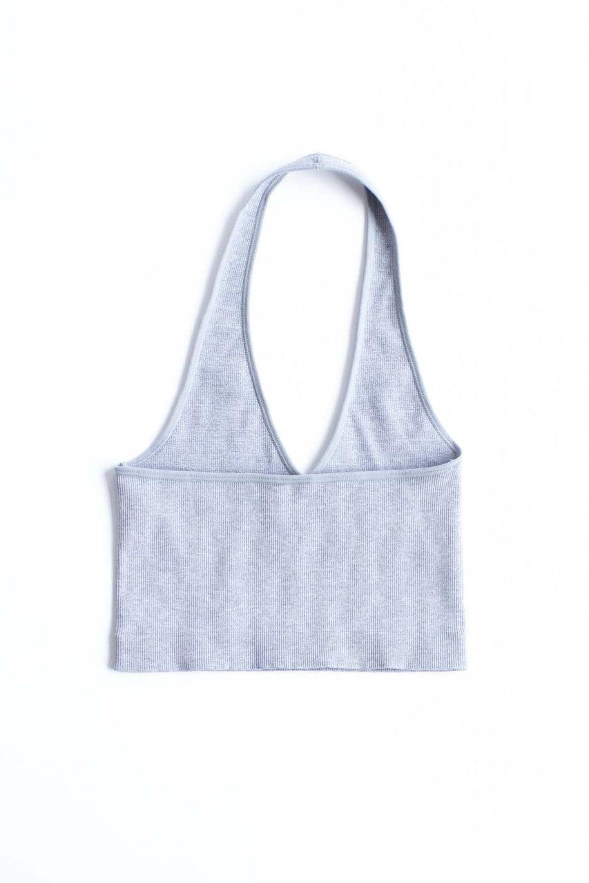 Heather Grey Seamless Deep V Halter Neck