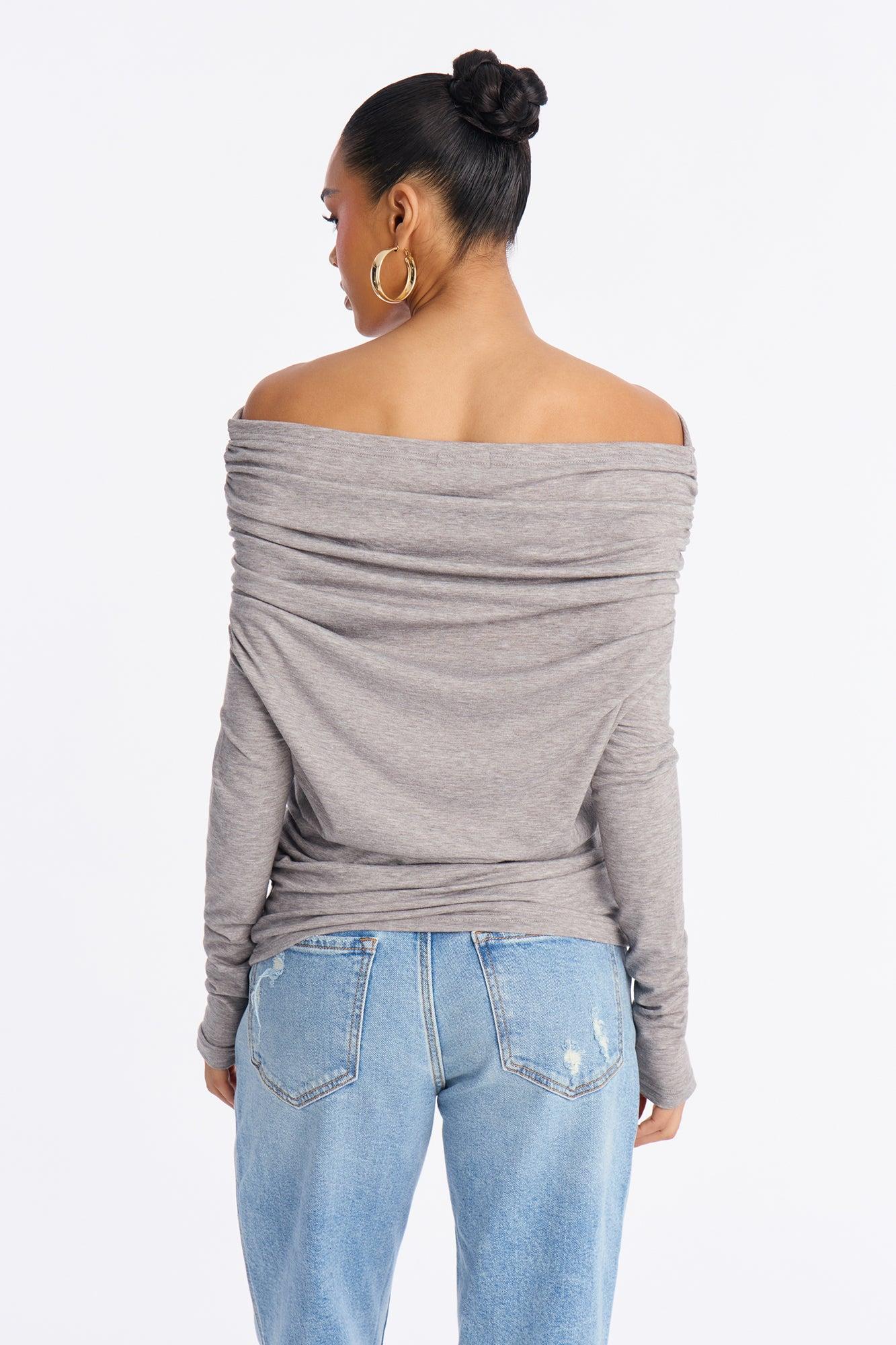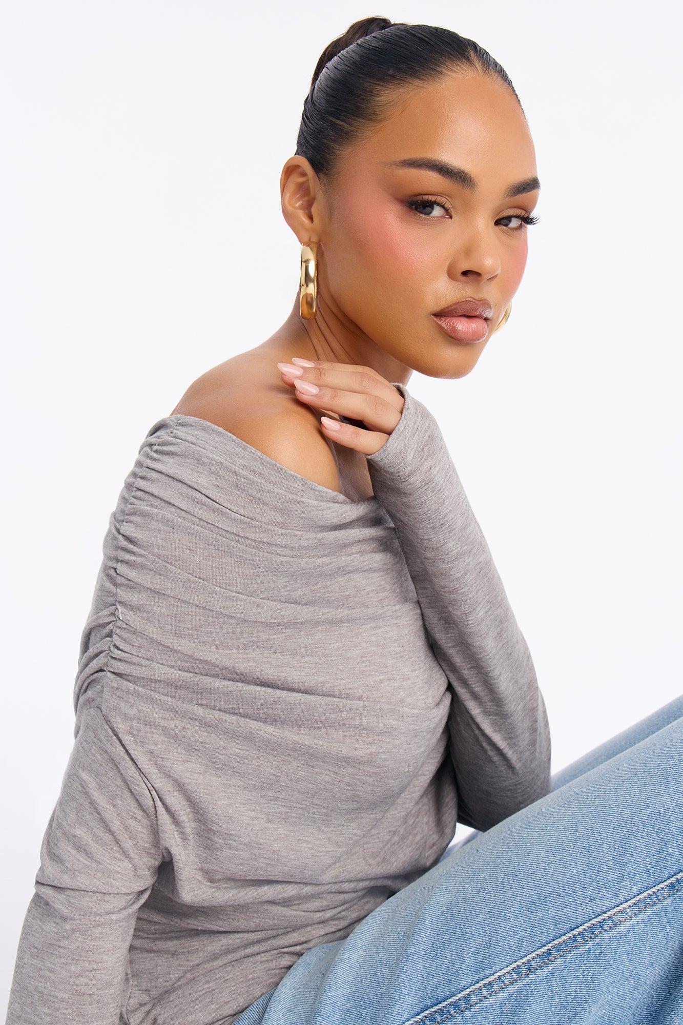 Heather Off Shoulder Ruched Long Sleeve Top - Heather Grey Female