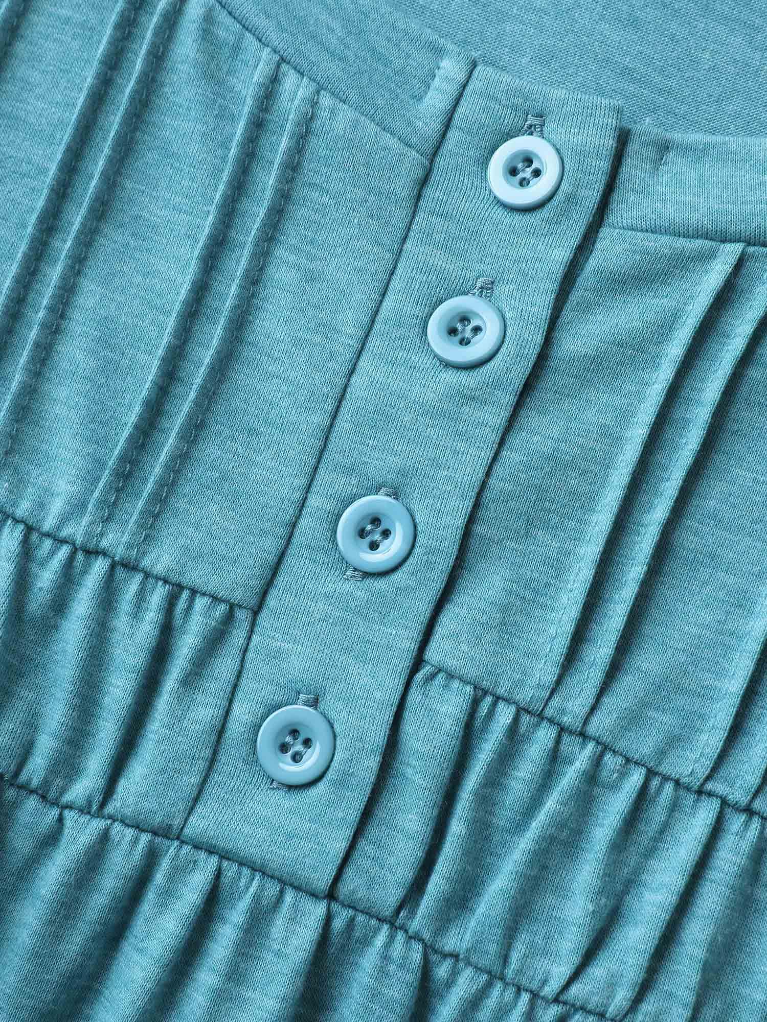 Heather Pleated Buttons Placket Solid T-Shirt Female