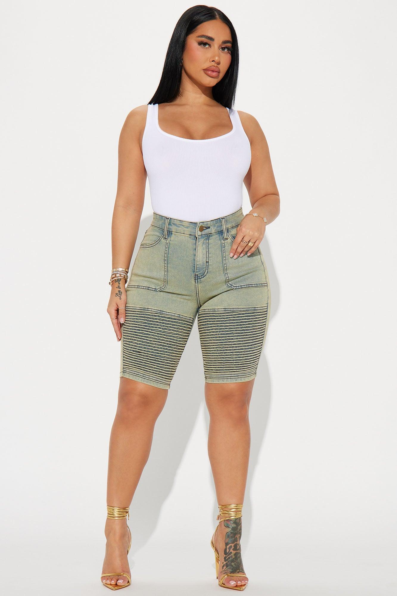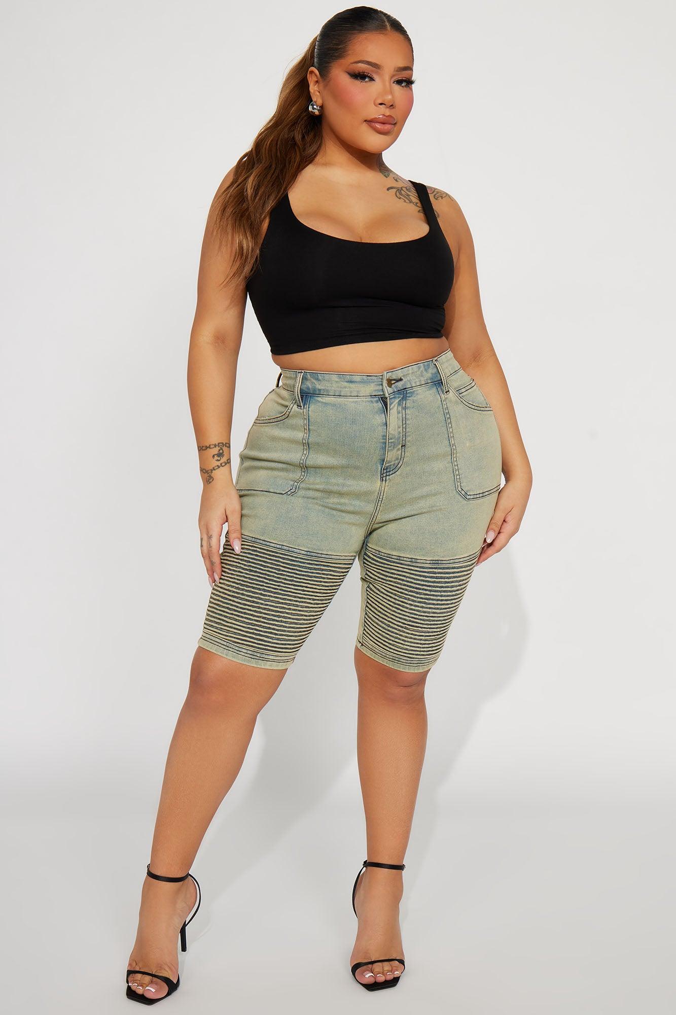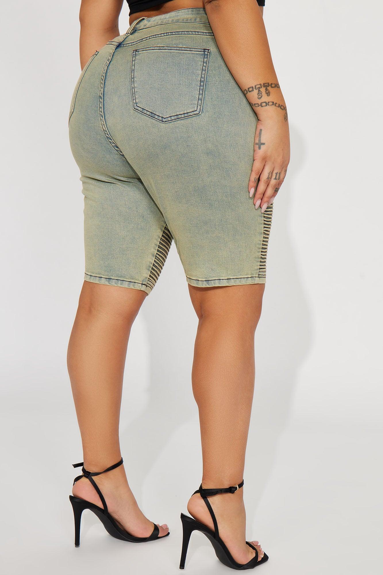 Available In Vintage Wash. Denim Bermuda Short Pockets Tinted Moto Detail 10" Inseam 11" High Rise Disclaimer: Due To The Specialized Wash Process, Each Garment Is Unique. 72% Cotton 26% Polyester 2% Spandex Medium Stretch Imported California Proposition 65 WARNING: Cancer and Reproductive Harm - www.P65Warnings.ca.gov.