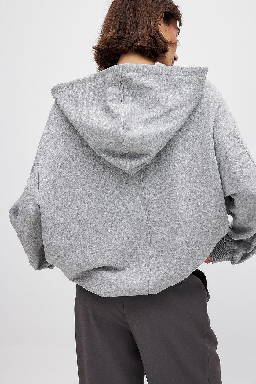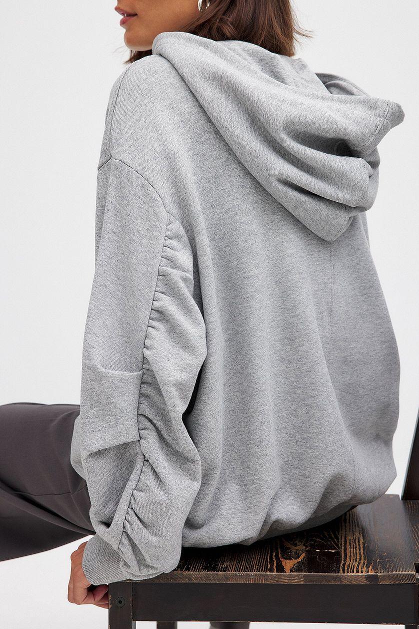 This hoodie features an oversized fit and a seam detail down the back. It has ruching on the sleeves.