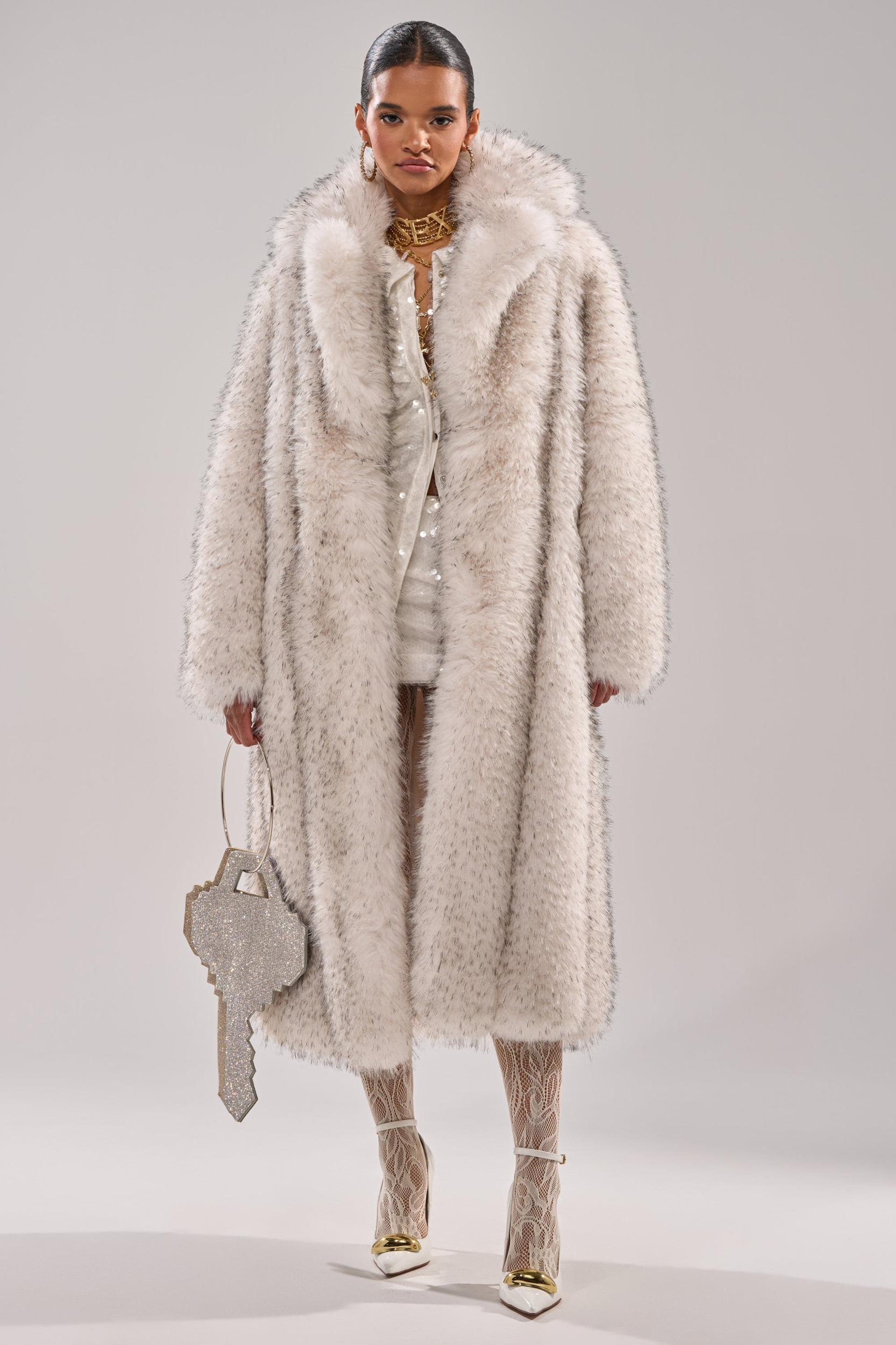 Experience new levels of luxury with The AKIRA Label Heavy On The Apres Faux Fur Coat. Crafted from exquisitely plush, high-pile faux fur, it features an oversized, longline silhouette, a wide notch-lapel collar, spacious side-seam pockets, silky interior lining, and discreet hook-and-eye front fastenings. - Fur: 100% Polyester, Lining: 100% Polyester- Dry Clean Only- No Stretch- Imported (all measurements approximate from size S/M)- 47” Shoulder to Hem- 15” Shoulder to Shoulder- 25” SleevesProduct ID: 1064864 (all measurements approximate from size 1X/2X)- 49” Shoulder to Hem- 18” Shoulder to Shoulder- 27” SleevesProduct ID: 1064866