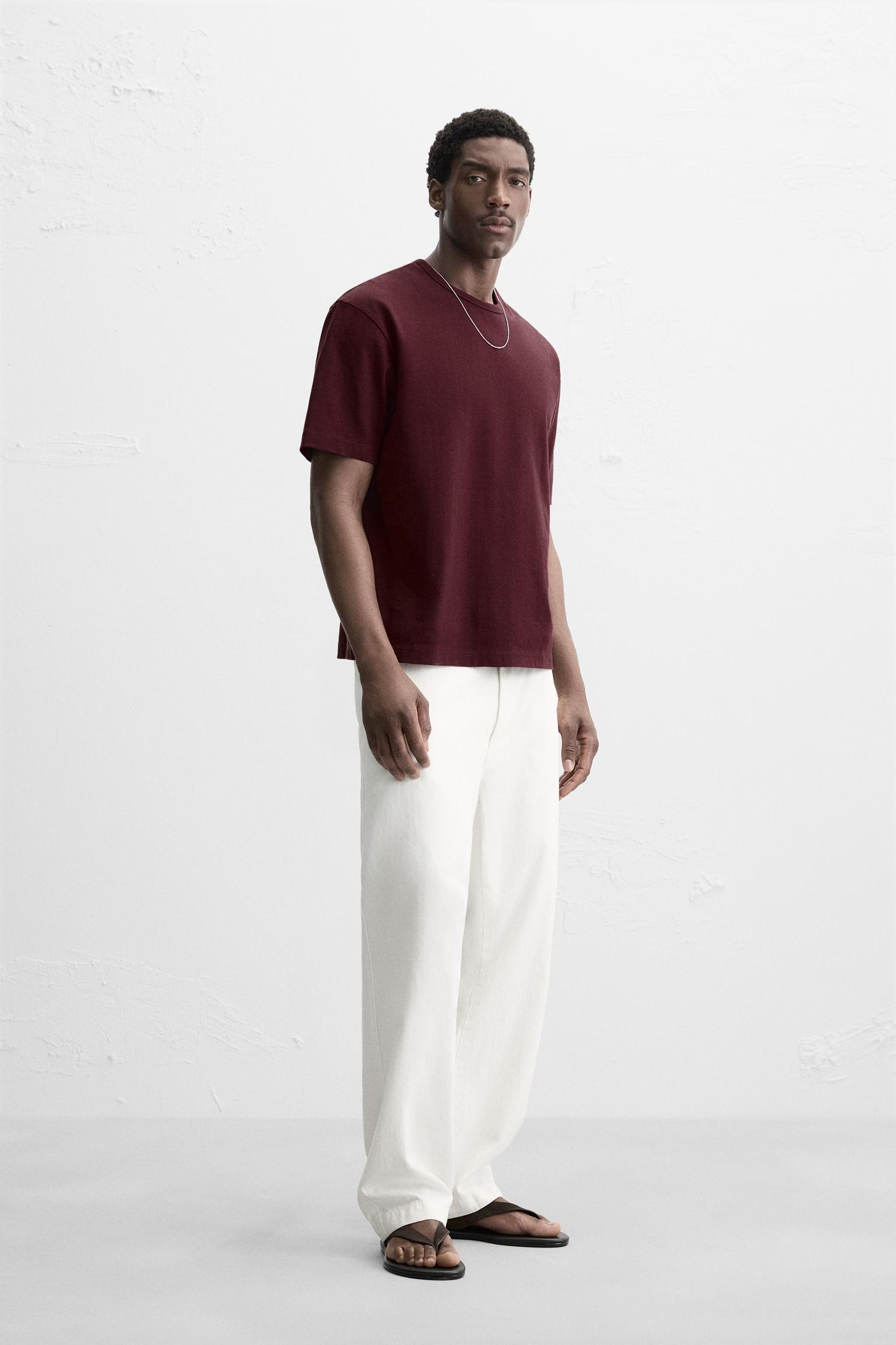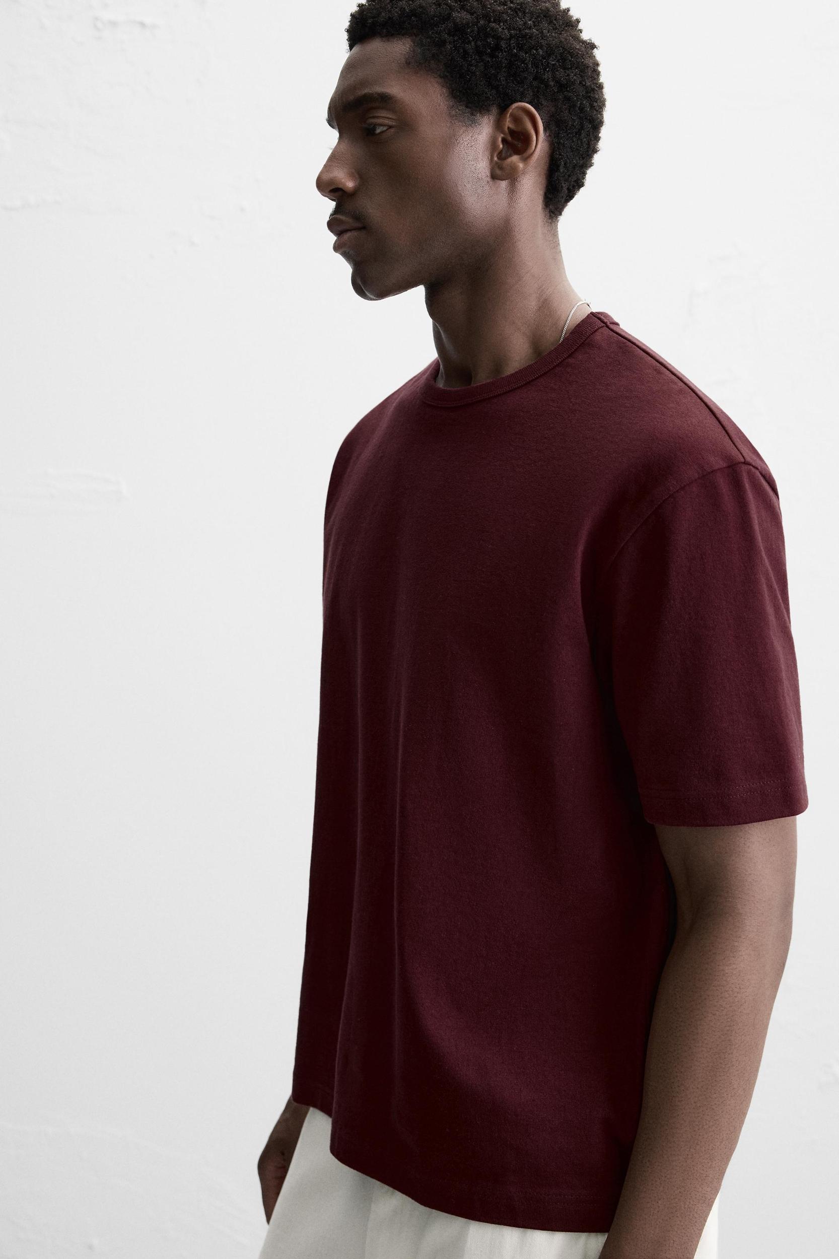 Relaxed fit T-shirt made of dense cotton. Round neck and short sleeves.