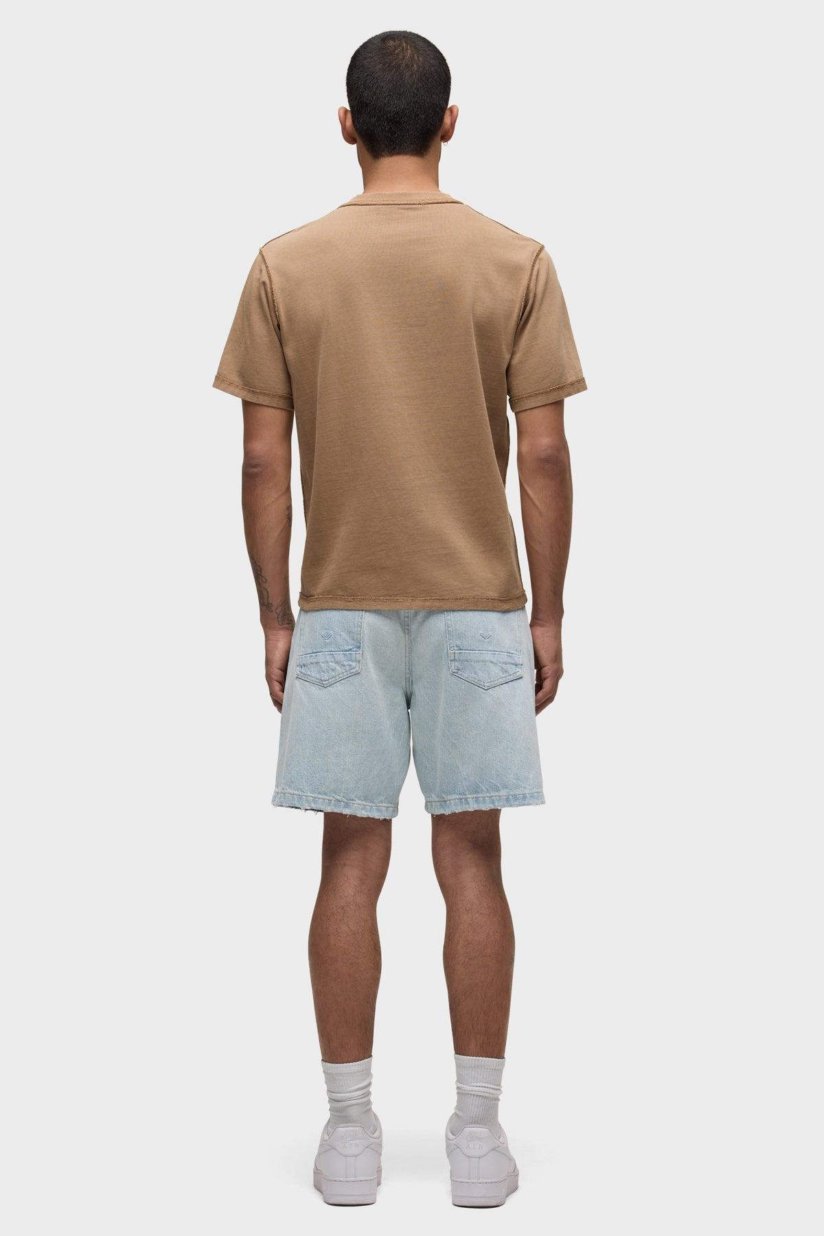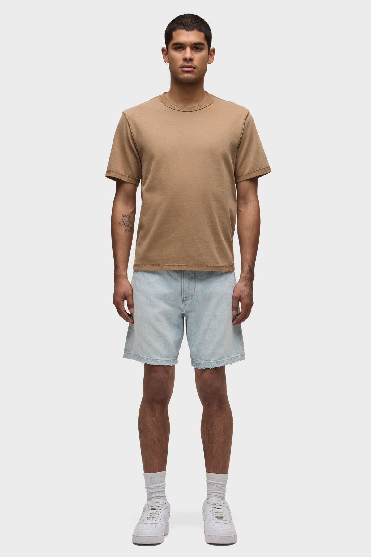 Description Our Heavyweight Tee in Desert Brush is made from 100% cotton in a reactive overdyed darker brown shade with a slightly cropped, boxy fit and a ribbed crew neckline. The tee is finished with reverse-seam details and stone washed to give a soft feel and worn-in look. Product DetailsBody Length: 26.75", Chest: 44", Sleeve Length: 9Our Heavyweight Tee in Desert Brush is made from 100% cotton in a reactive overdyed darker brown shade with a slightly cropped, boxy fit and a ribbed crew neckline. The tee is finished with reverse-seam details and stone washed to give a soft feel and worn-in look."Model Height 6’1"Model wearing size M/32Measurements based on size M/32 Fabric & CareContent: 100% CottonMachine wash cold gentle cycle inside out wash with like colorsDo not bleachTumble dry lowMedium iron inside out if needed