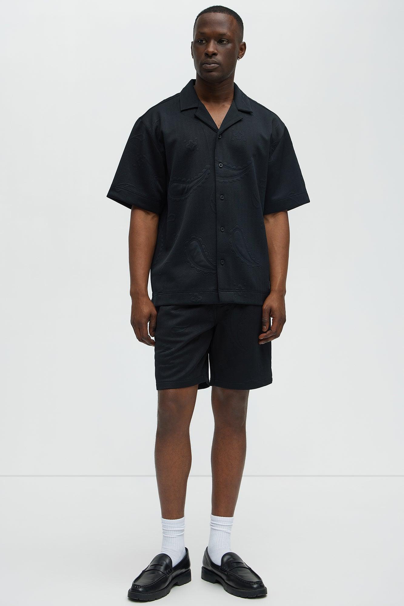 Heavyweight Textured Jacquard Relaxed Short - Black