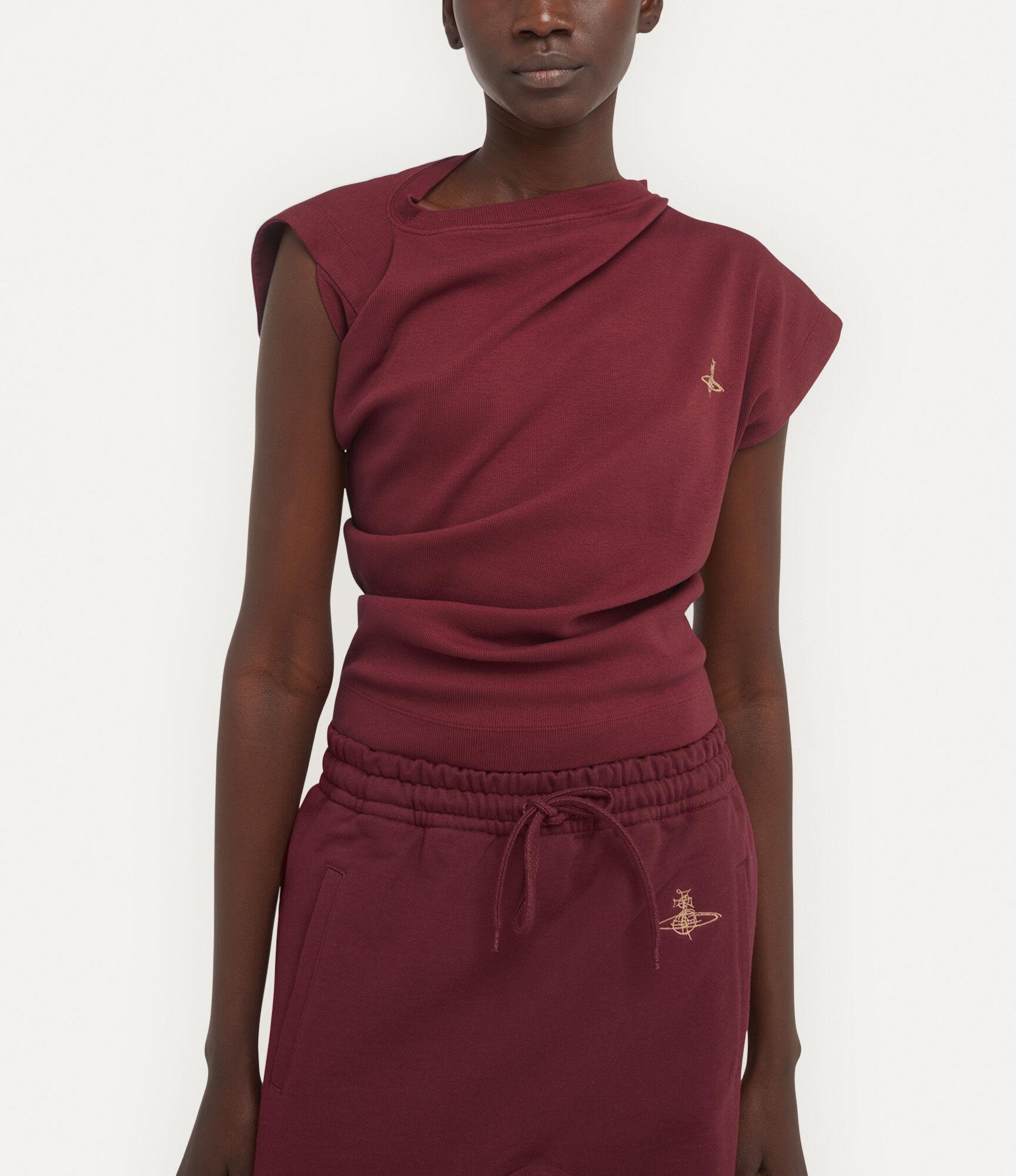 This season, the house’s signature Hebo top is updated in a soft ribbed cotton finish and detailed with the signature Graffiti orb motif on the left chest - echoing Vivienne’s vision of launching tradition into the future. The silhouette features the signature slash-inspired neckline, fluid draping, and a twisted fabric detail at the back of the design.