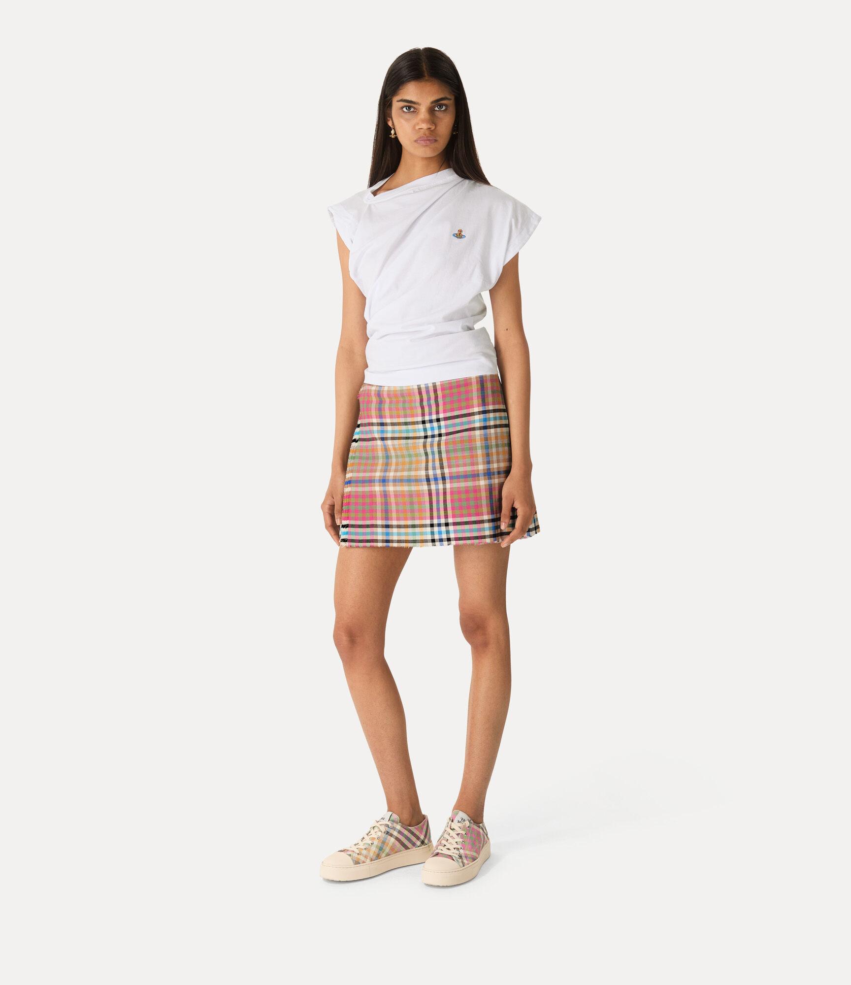 The house's signature Hebo top has been updated, featuring a soft cotton finish this season and an orb embroidery on the left-hand side of the chest - synonymous with Vivienne's vision of launching tradition into the future. The silhouette incorporates Vivienne's signature slash-inspired neckline, drape details and twisted fabric at the back of the design.