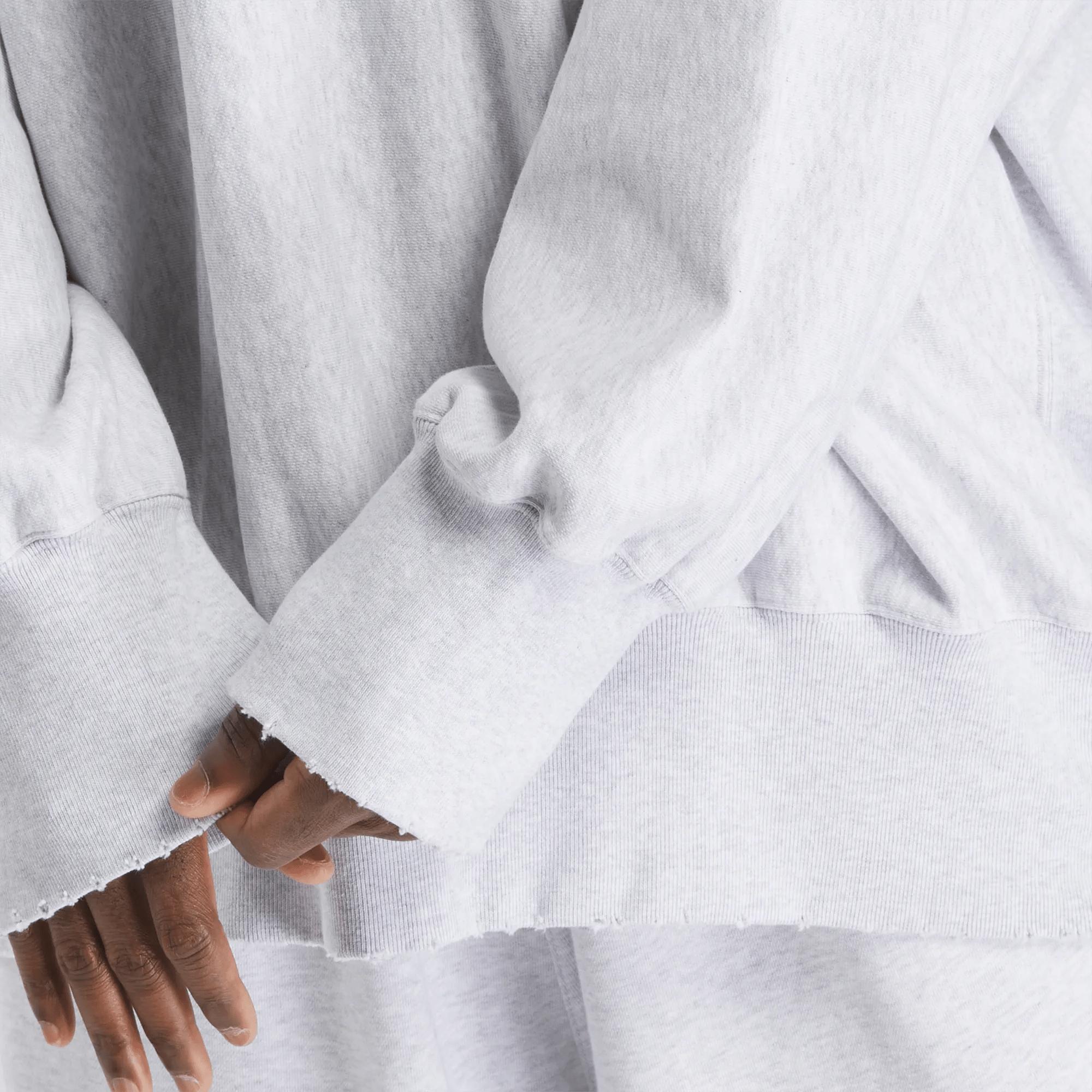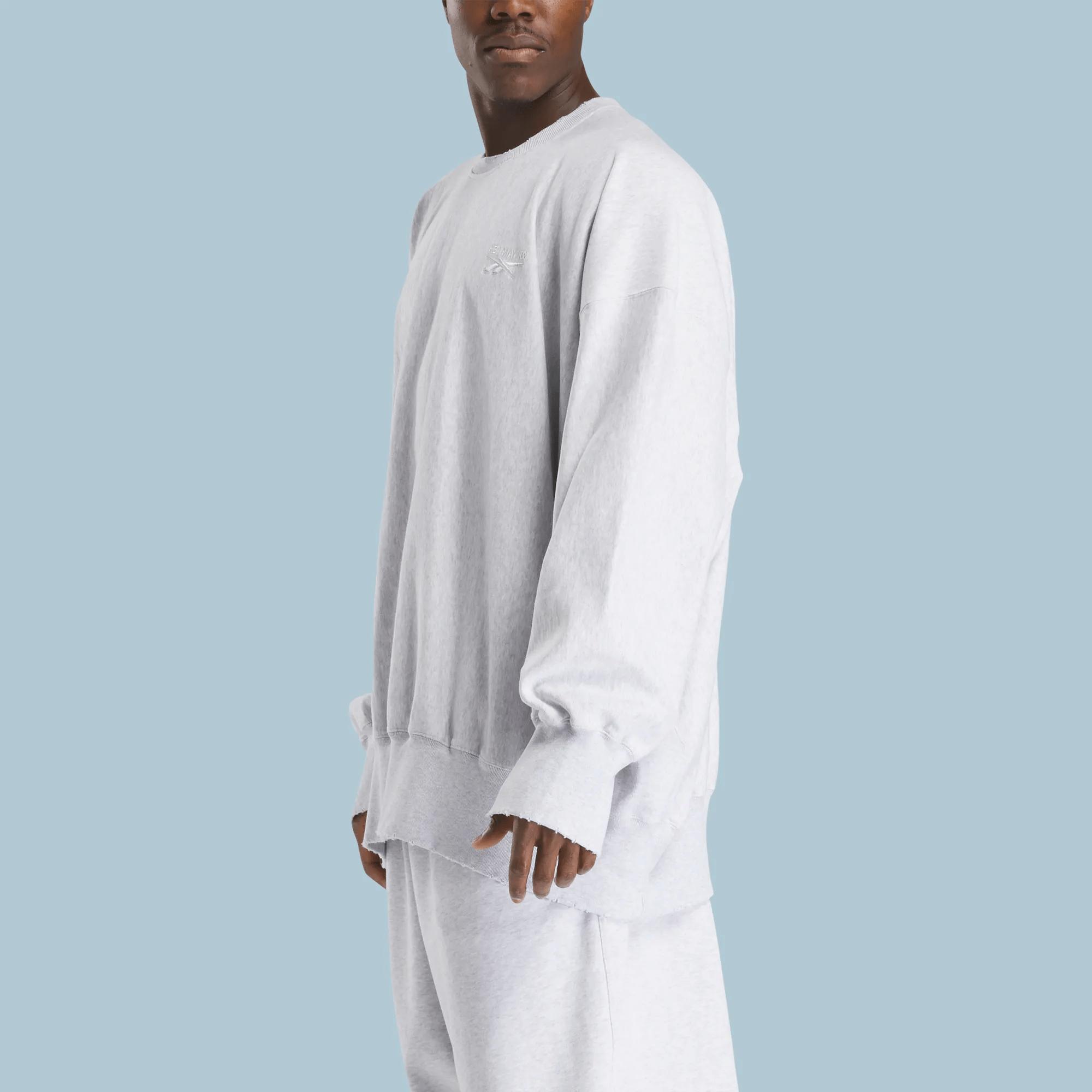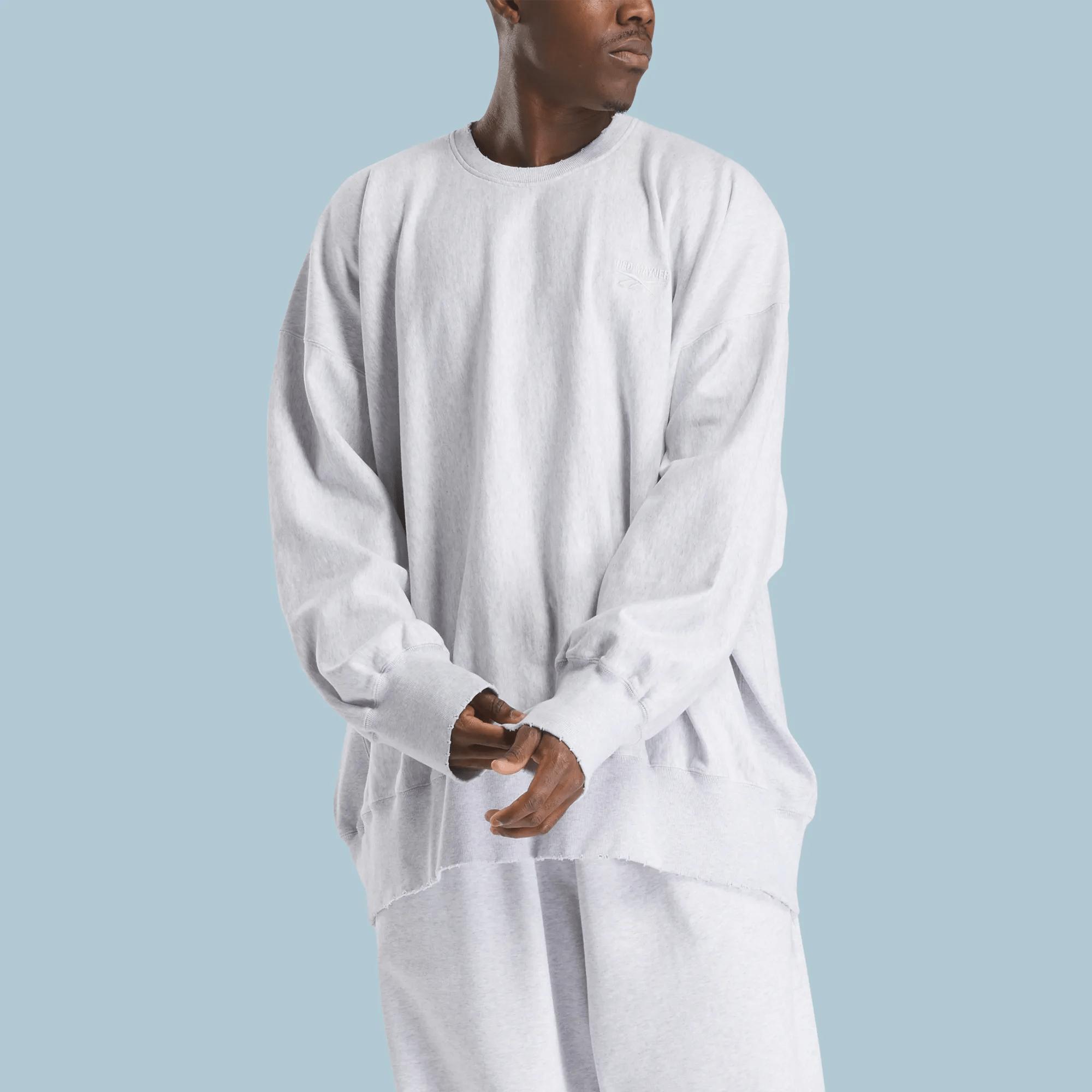 Introducing the Hed Mayner x Reebok LTD Crewneck Sweatshirt—a seamless blend of elevated streetwear and relaxed sophistication. Crafted from premium 100% cotton French terry, this oversized sweatshirt features subtle distressing throughout, adding a touch of worn-in character. Its rib-knit detailing at the crewneck, hem, and cuffs bring a classic edge, while dropped shoulders and rib-knit side panels create an effortlessly relaxed silhouette. The embroidered logo at the chest is a minimal yet distinctive touch, reflecting the understated elegance of the Hed Mayner x Reebok collaboration.
