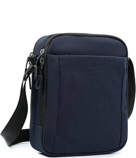 The RELAX Crossbody Bag allows you to travel with ease and peace of mind. Featuring two main compartments and padded pocket for your devices, you can easily keep everything you need close at hand. Protective side gussets and soft foam between the outer fabric and inner lining give this bag structure, while both main compartments boast dual zippers for accessibility. Features: 2 main compartments, both with double zipper puller closure and protective side gussets Pocket with RFID blocking material to protect your personal information Key chain hanger Dedicated compartment for small devices with padded holder. Safety back pocket with recessed zipper opening and close body positioning U shaped zipped front pocket for keys and small necessities Outer material: 900 x 1000 denier RPET polyester Lining material: 150 denier RPET polyester Adjustable strap measures approx. 48" L and drop 12" - 24" Each Measures: Approx. 8.3" L x 3" W x 10.2" H Volume approx. 4.1 L Weight approx. 0.6 lbs. Imported.