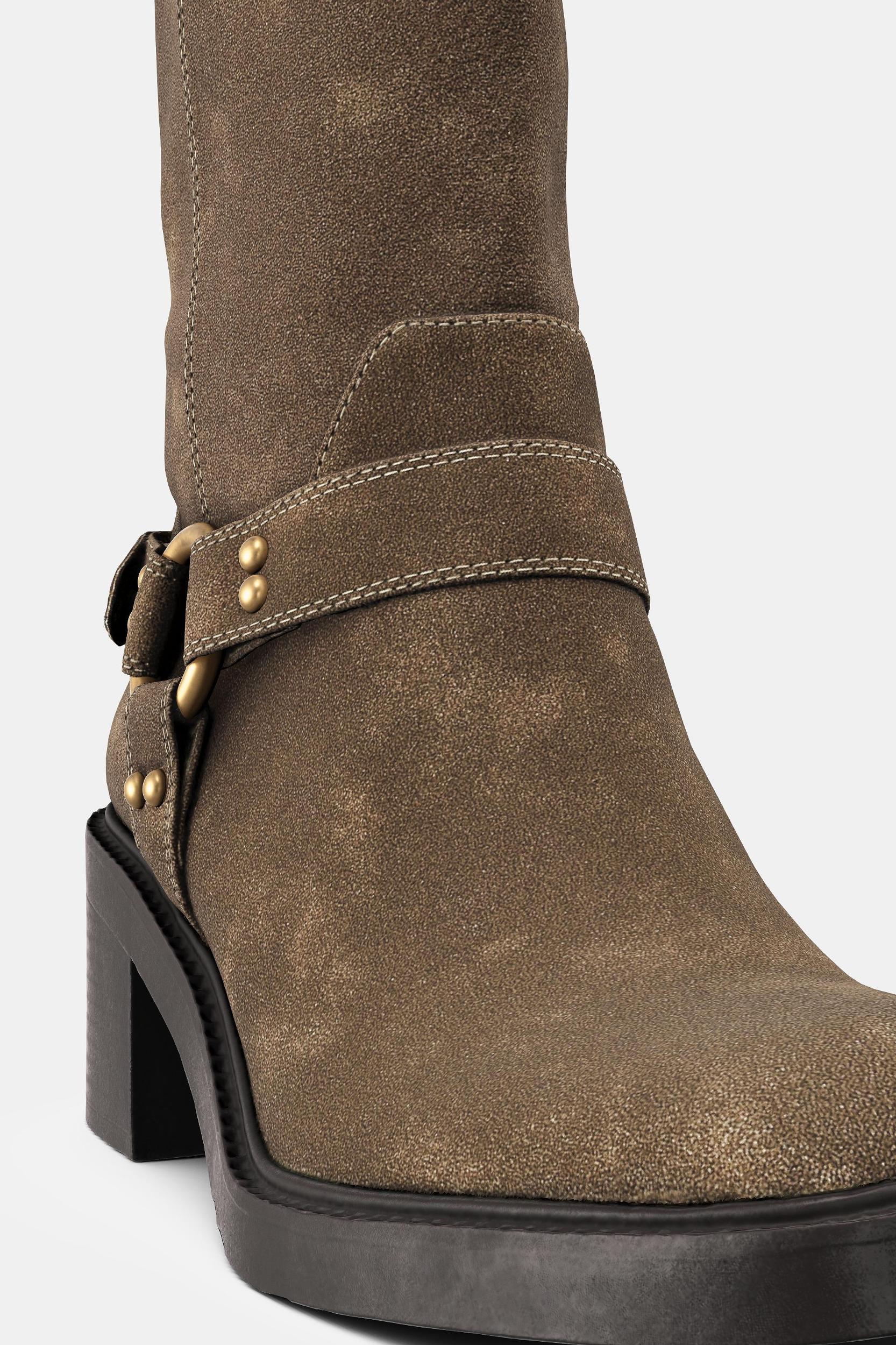 SPLIT LEATHER HIGH-HEELED BOOTS