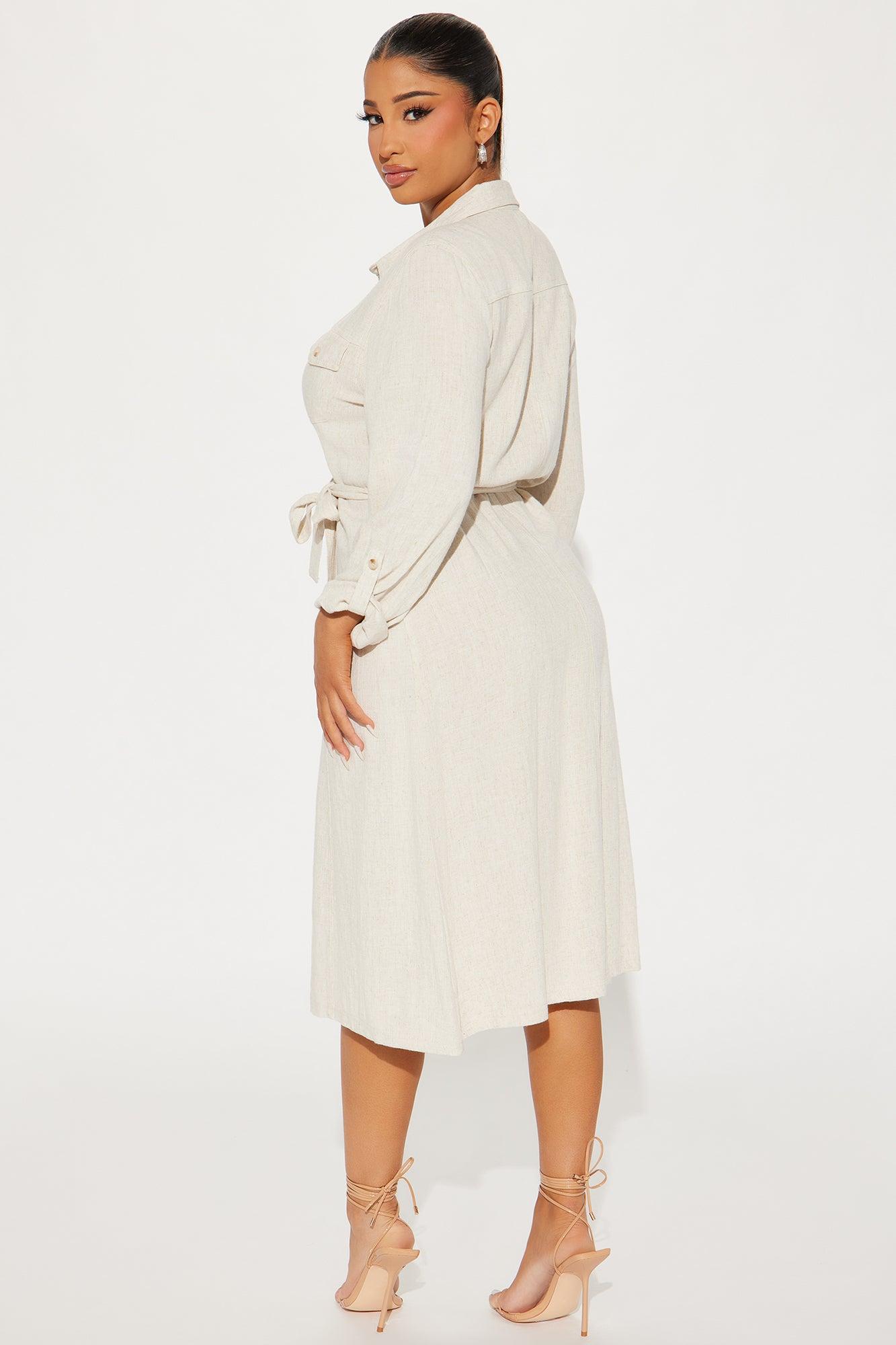 Heidi Linen Midi Dress - Beige