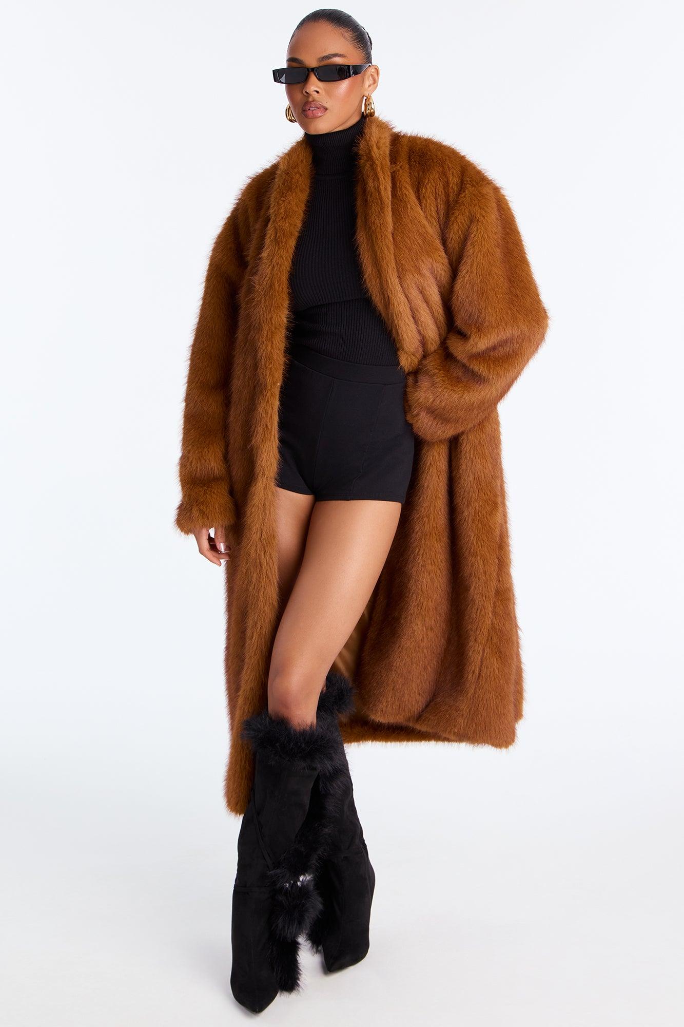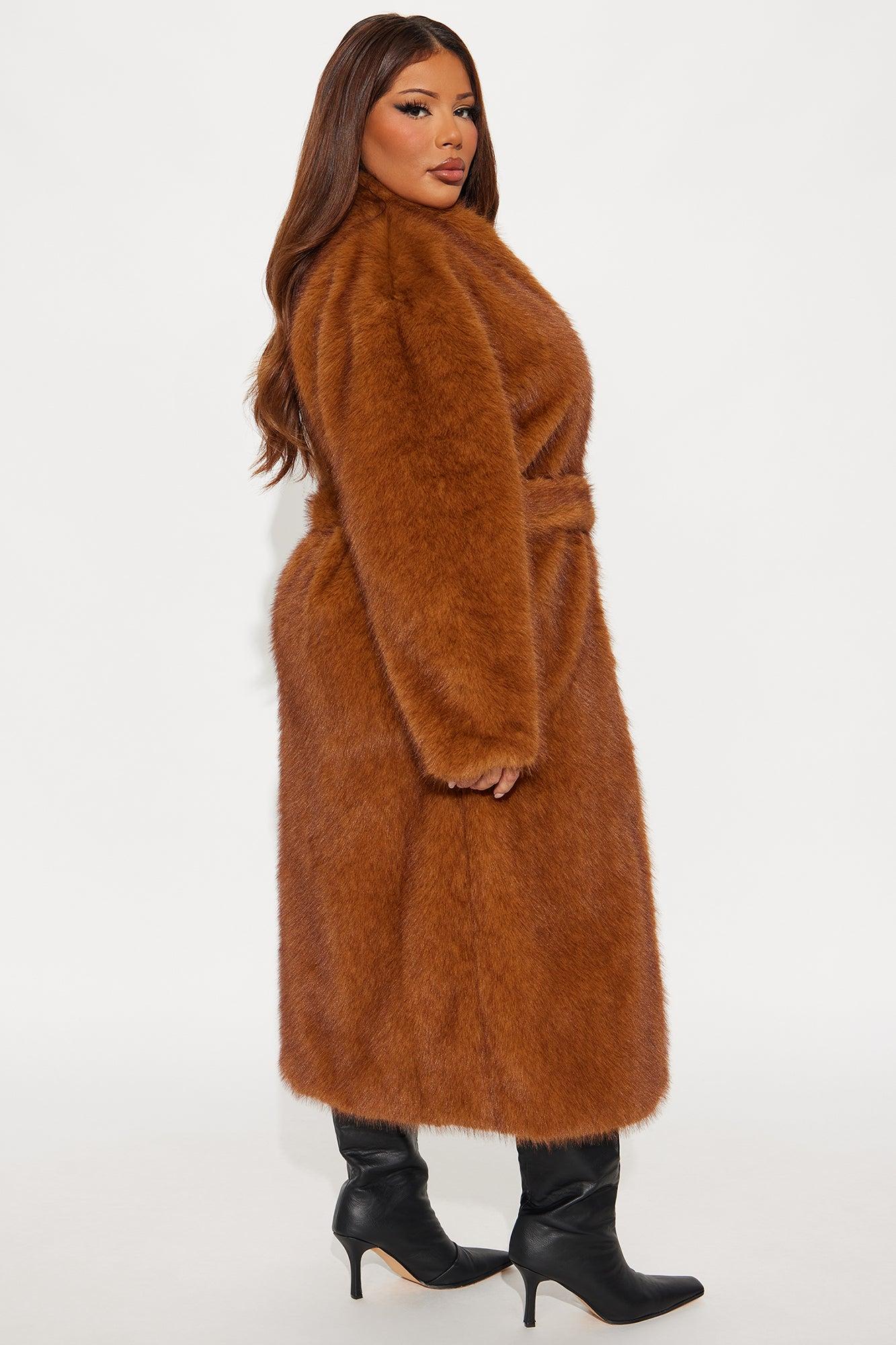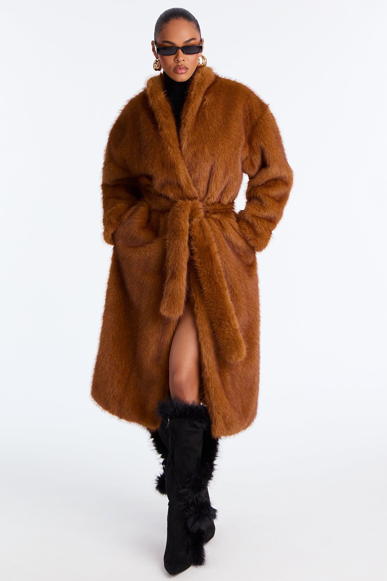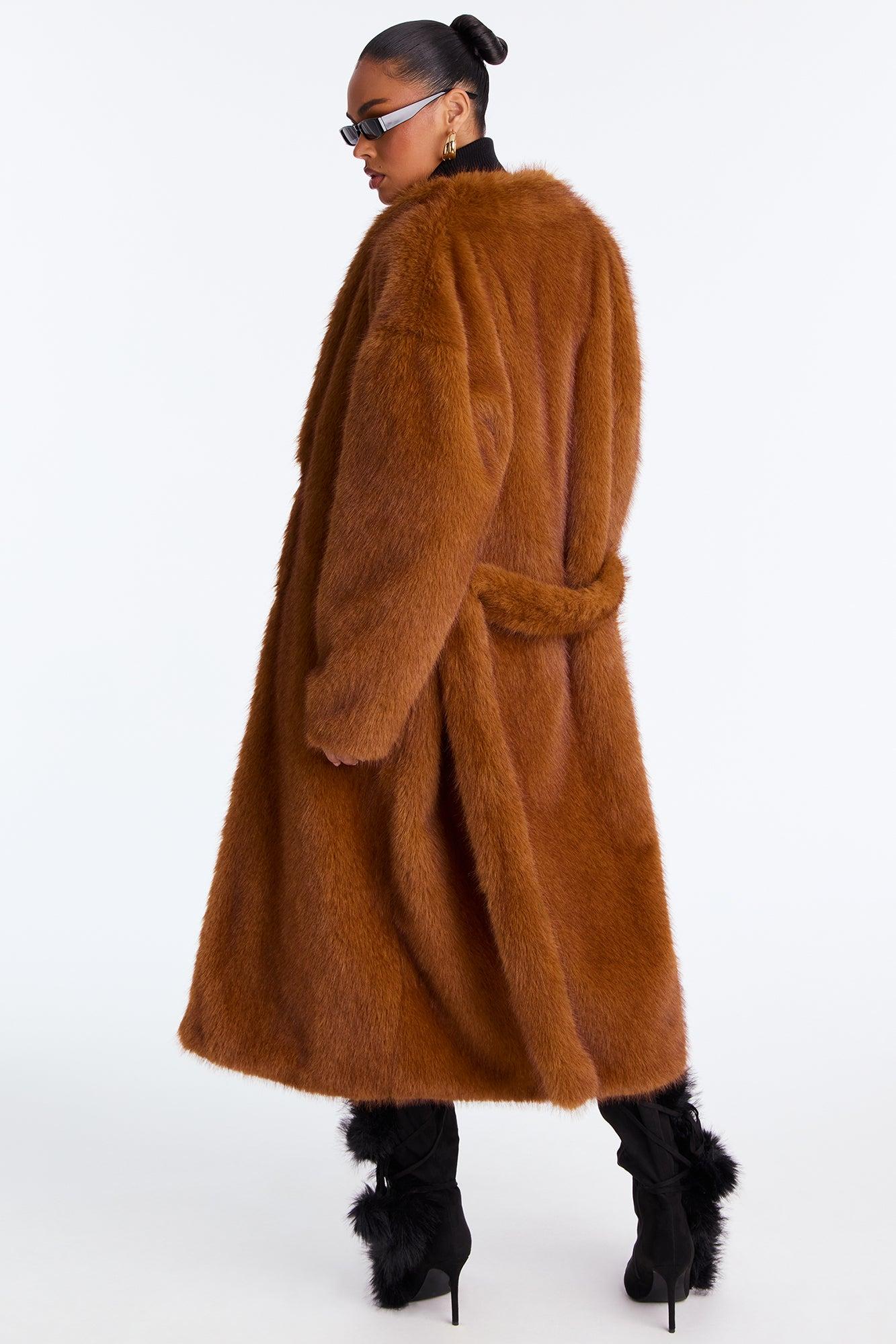 Helena Faux Fur Belted Coat - Cognac Female