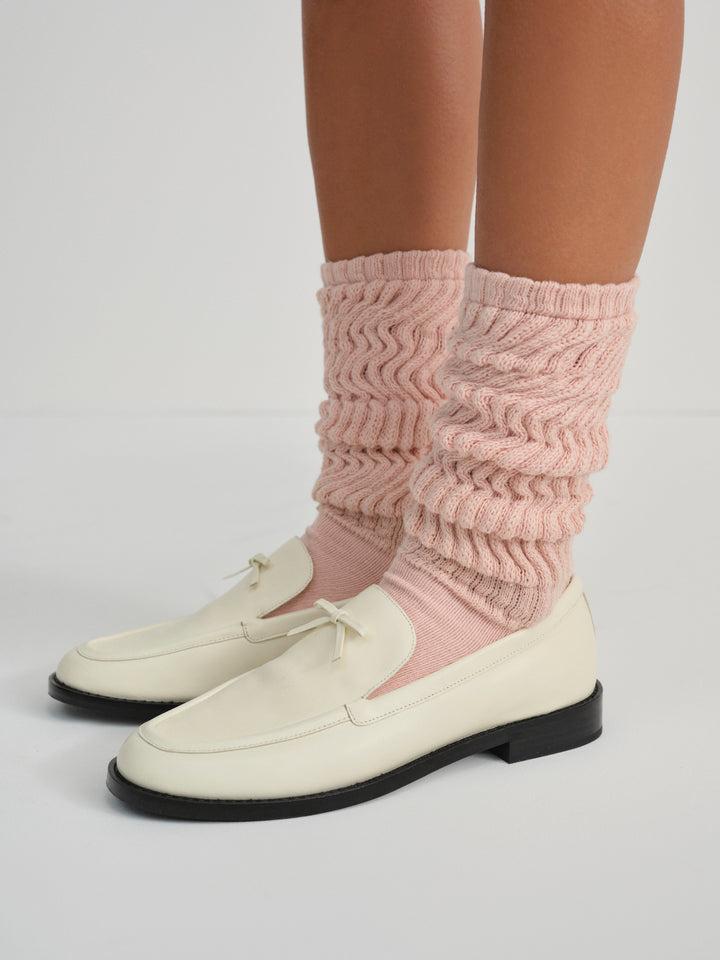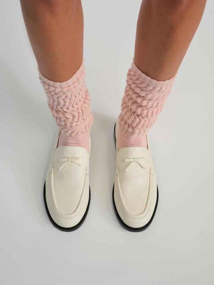 Designed for crisp mornings and cafe rendezvous, update your fall footwear collection with the Helena cream loafers. Crafted in a luxurious leather, these chic women’s loafers are featured in a classic silhouette and are adorned with a decorative bow.