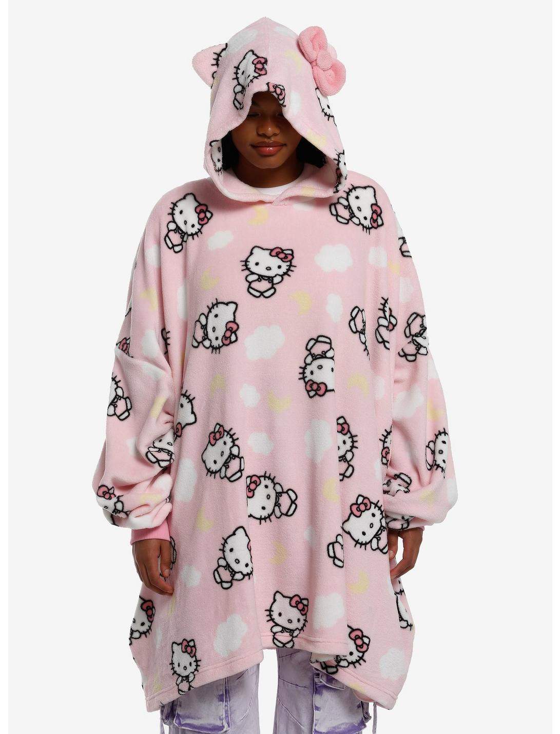 Hello Kitty Allover Print Fuzzy Overside Hoodie
