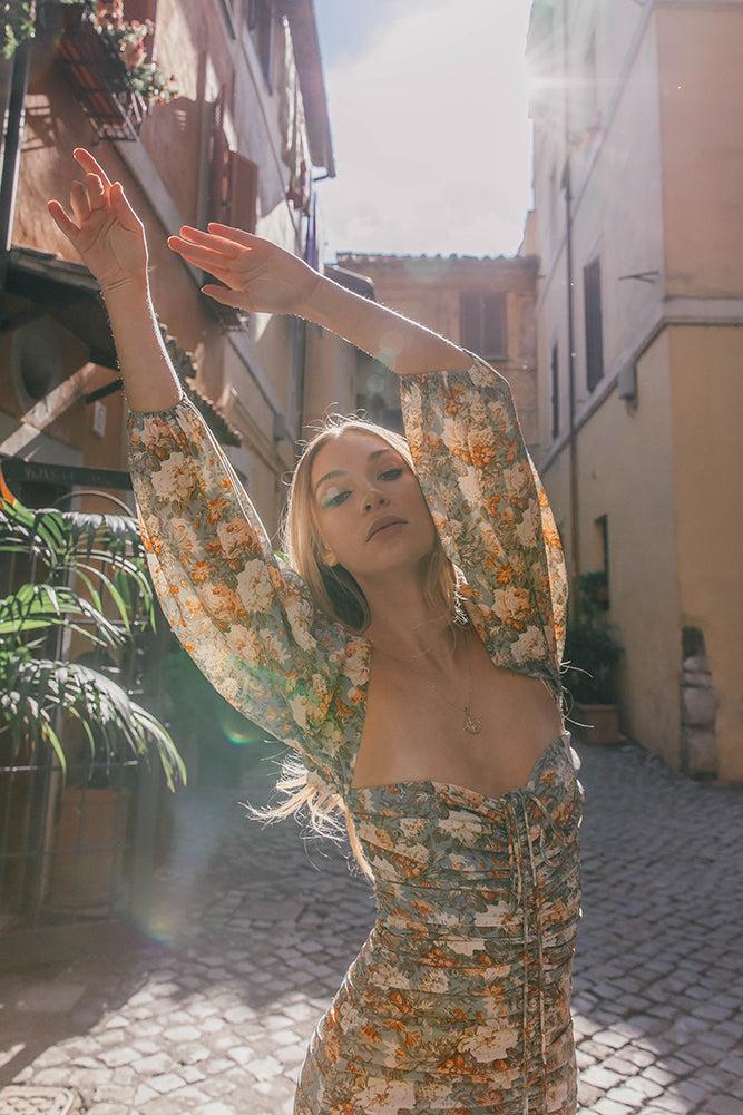 Stand out at the next garden party with the Basque Country Dress by our sister brand HELLO MOLLY! We're styling ours with a gold necklace and strappy heels.