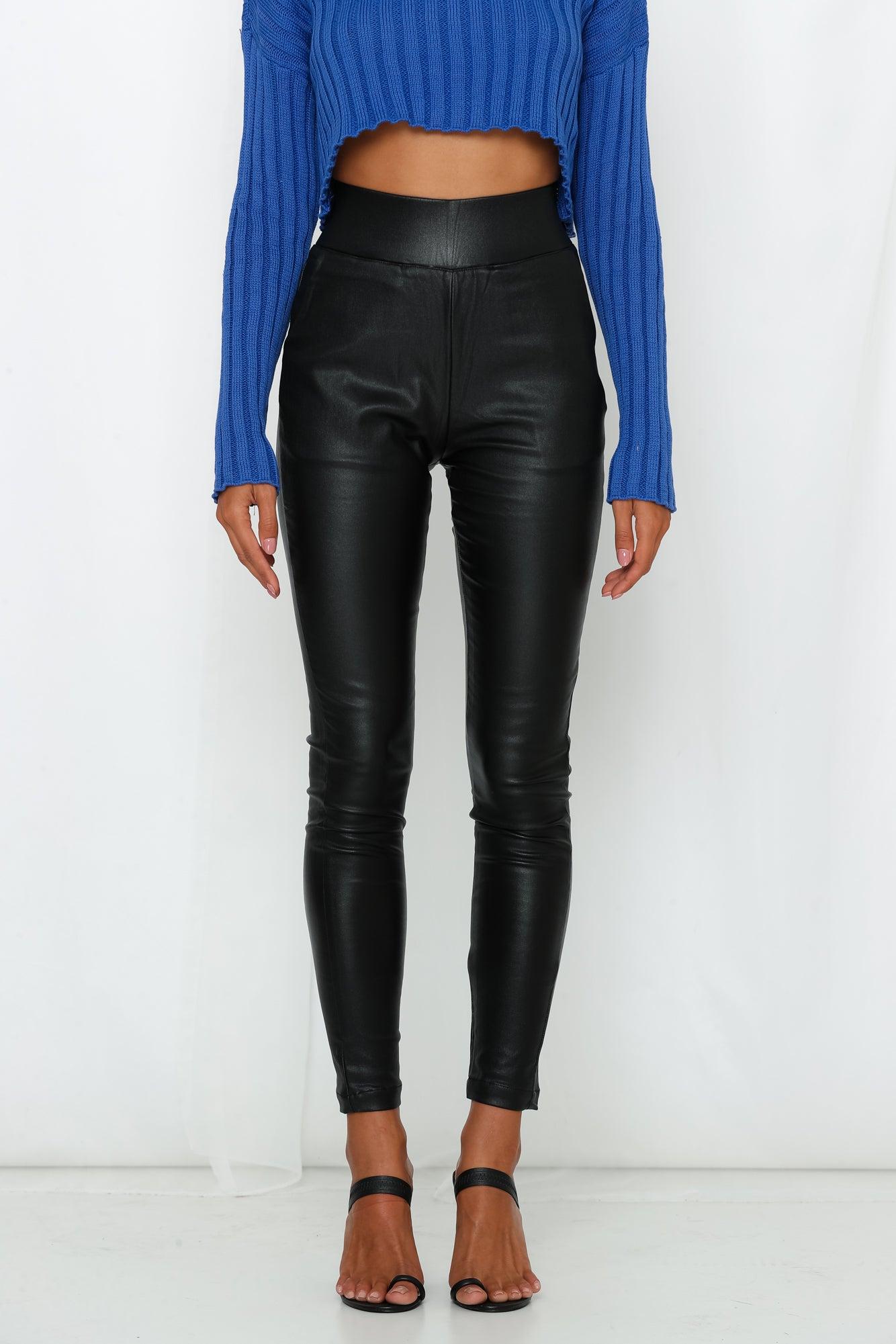 Length: Inside Leg: 70cm ; Front Rise: 29cm ; Leg Cuff: 24cm (of size S). Black faux leather pants. Non-lined. Cold hand wash only. Model is a standard XS and is wearing size XS. True to size. Lightweight, non-stretchy leather fabric. Please note: This is exclusive to Hello Molly. Wear your Black Betty Pants at your next cocktails and drinks event. These exclusive pants provide a firm faux leather shell and that hug in all the right places. Pair these with some black strappy heels and a simple crop top.