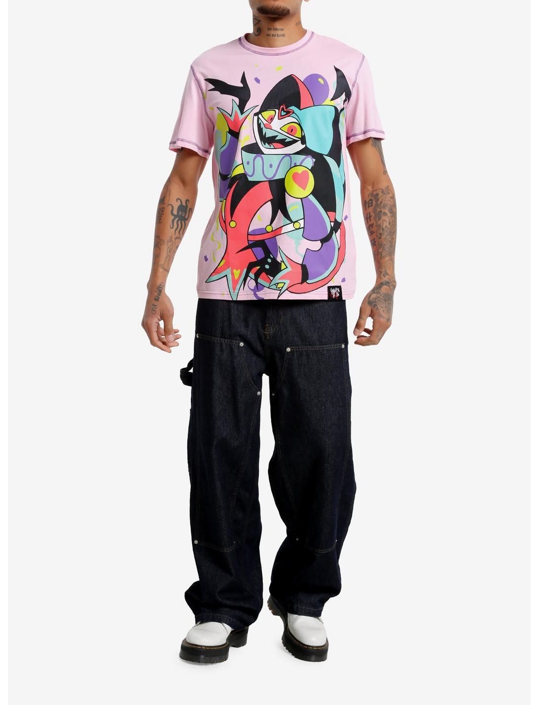 Look at this! Please look at this! Your favorite clown is ready to take the starring role in your wardrobe. This Helluva Boss tee features a jumbo print of Fizzarolli and contrast stitching on the hems.100% cottonWash cold; dry lowImportedListed in unisex sizesModel is 6'1"Model wears size Medium