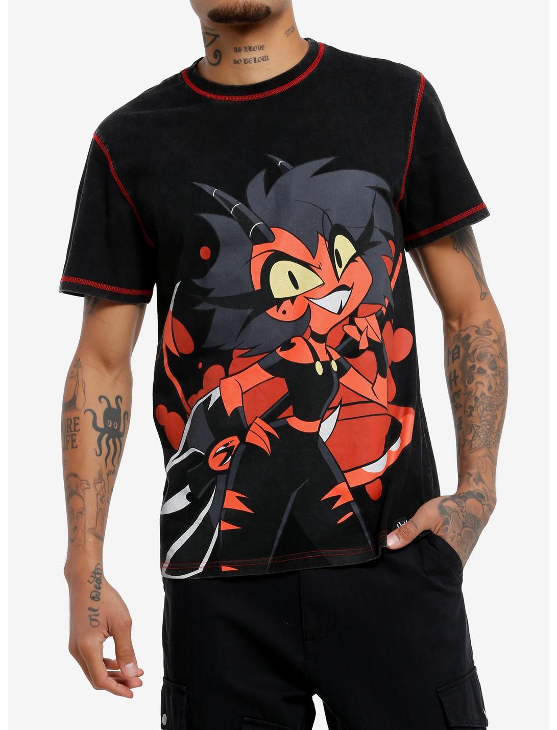 Rep one of the most lethal assassins at I.M.P., and one of the most doting wives in hell! This Helluva Boss tee features a jumbo print of Millie, plus contrast stitching on the hems.100% cottonWash cold; dry lowImportedListed in unisex sizesModel is 6'1"Model wears size Medium