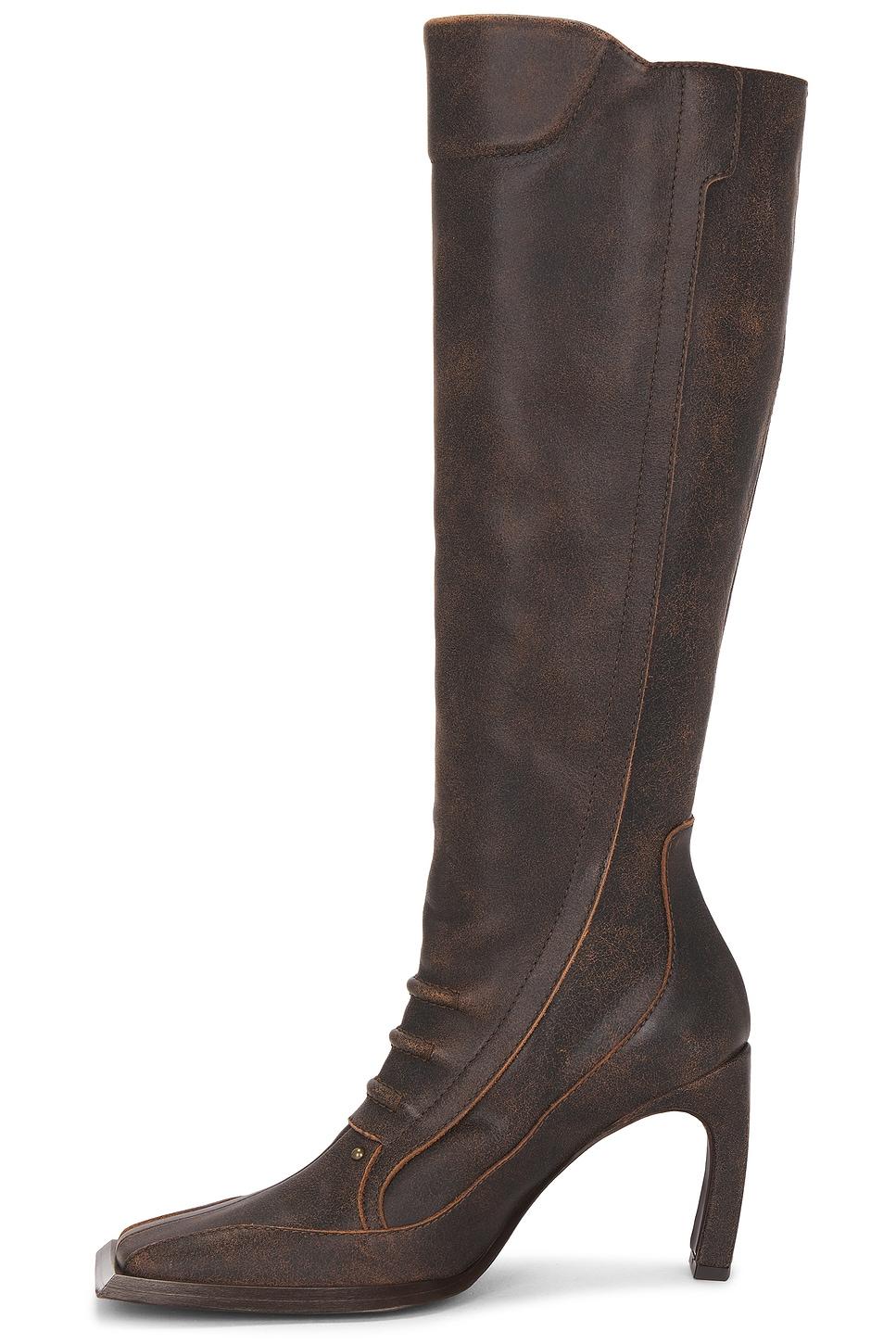 bootLeather upper and leather sole / Made in Italy / Side zipper closure / Side buckle accent / Square toe / Curved heel design / Approx 90mm/ 3.5 inch heelApprox 368mm/ 14.5 inch shaftShaft measures approx 14.9" in circumference / Our Style No. KNLF-WZ6 / Manufacturer Style No. SS25-HELZBBO0BR /