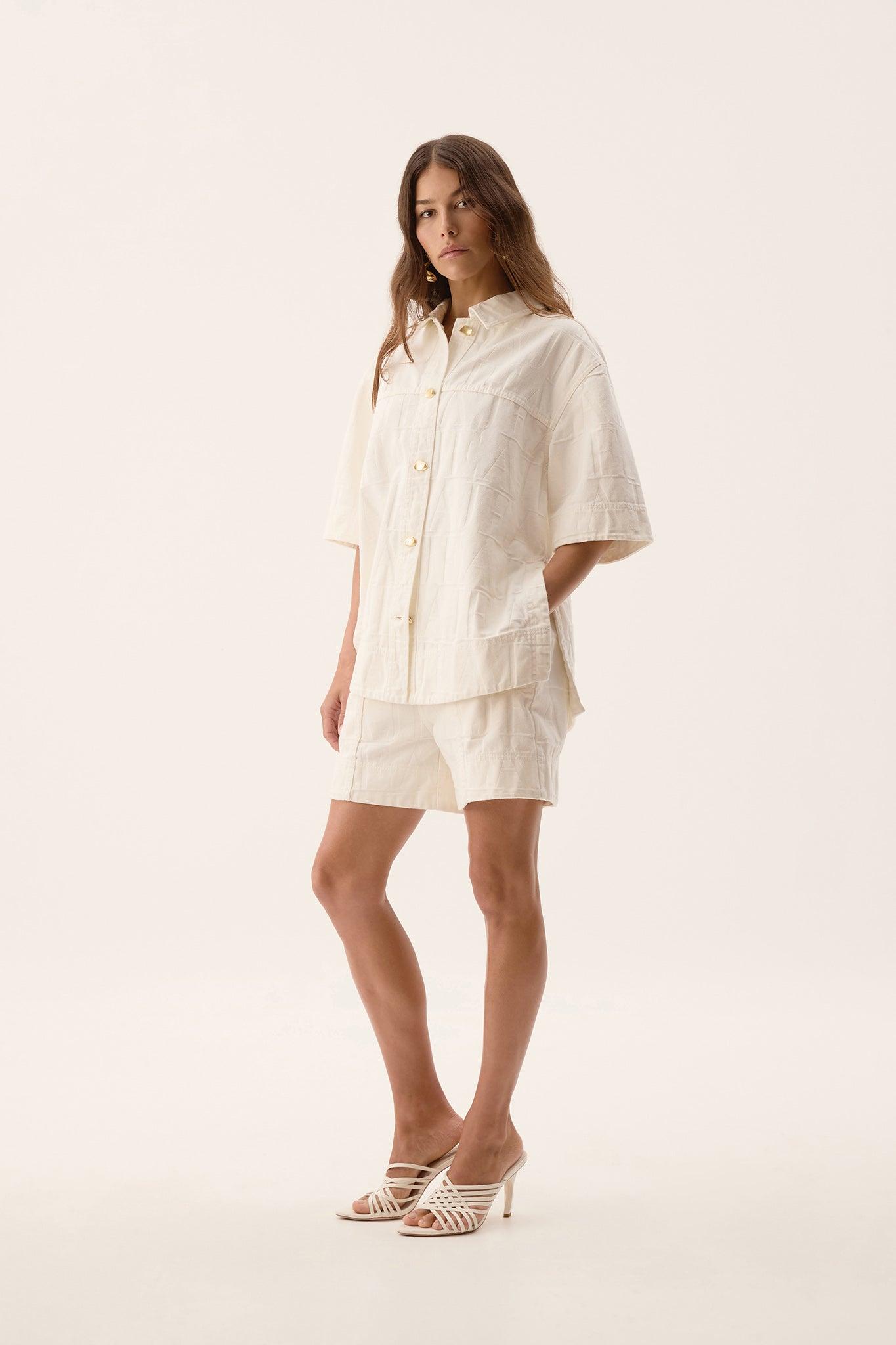 PRODUCT DETAILS Denim shirt Shirt collar Placket with accent buttons Leather logo patch Side hem splits 100% Cotton Delicate Cold Machine Wash Shop All Tops SIZE AND FIT Model wears a size AU 8/S Height: 178cm/ 5’10 Bust: 76cm Waist: 58cm Hips: 86cm