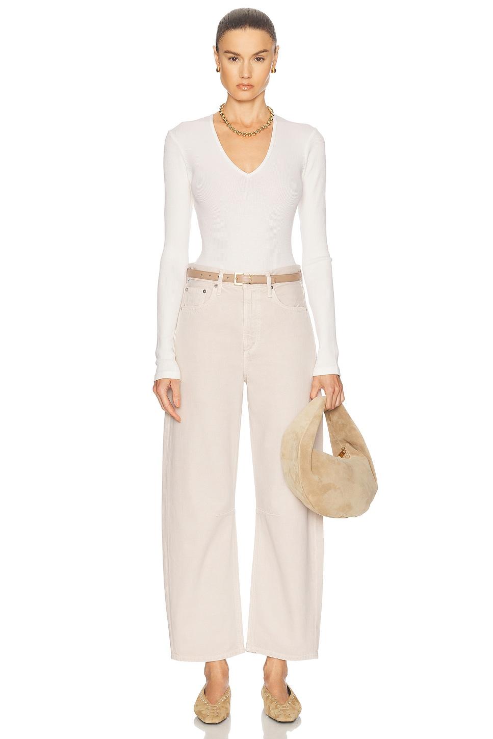 bodysuit49% organic cotton, 49% lyocell, 2% spandex / Made in USA / Machine wash / Snap gusset closure / Midweight ribbed jersey fabric / Garment is made with a semi-sheer fabric, undergarments can show through / Our Style No. CITI-WS337 / Manufacturer Style No. 9344-3004 / Model is wearing size S.