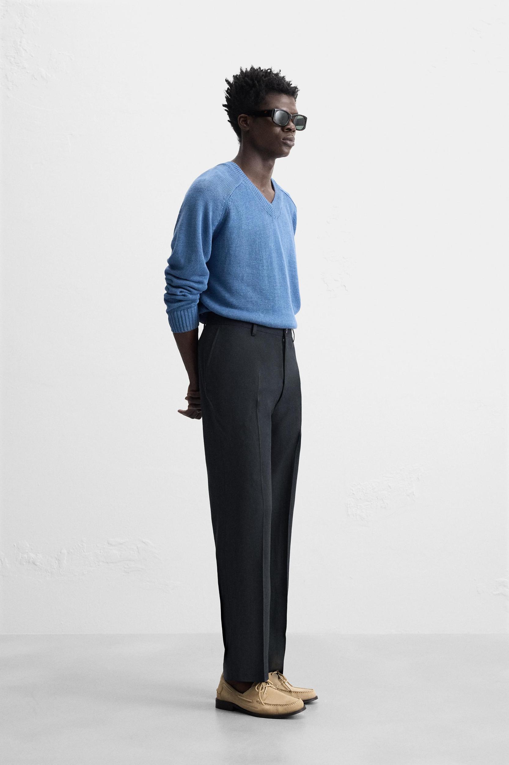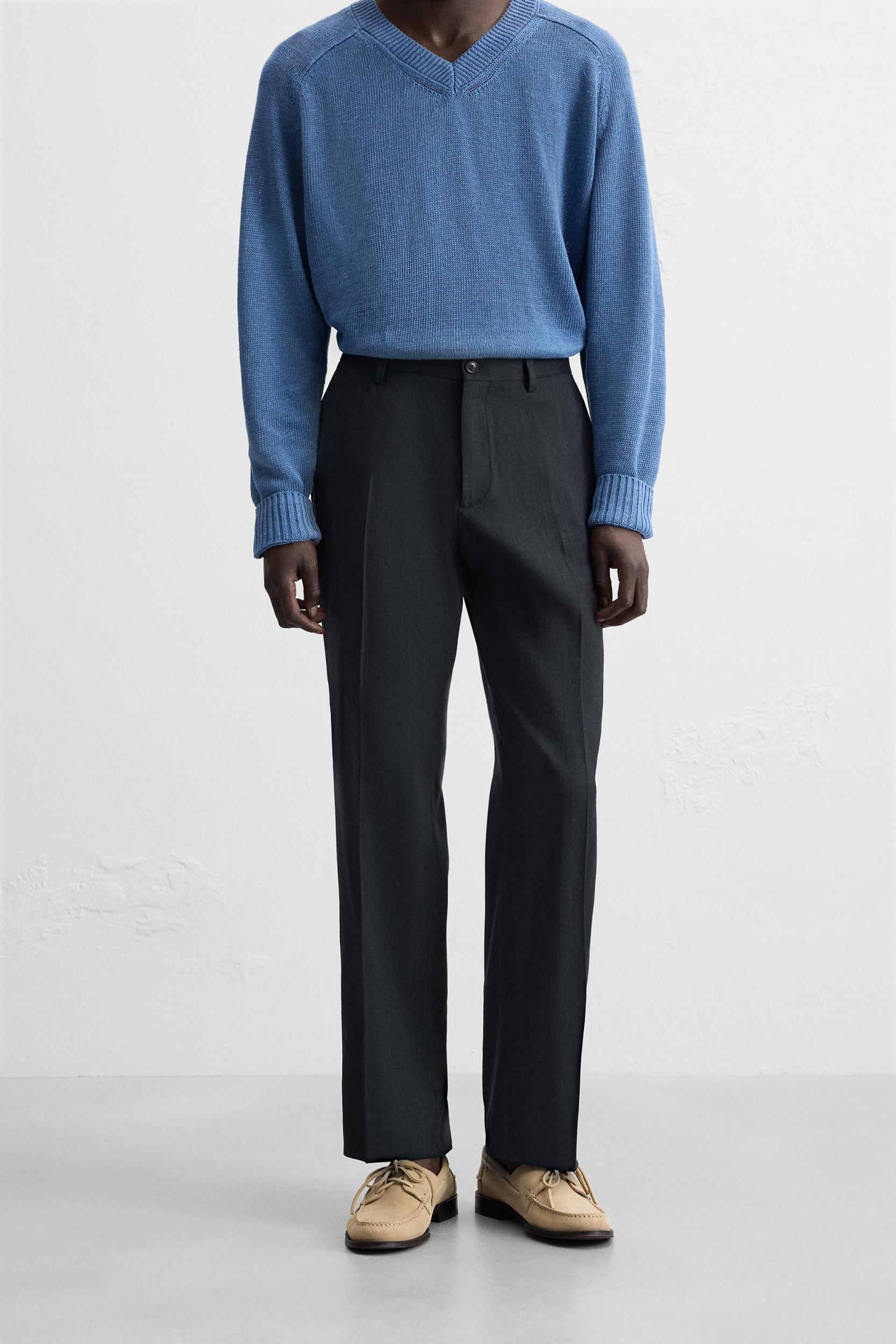 Regular fit pants made of Italian hemp and wool fabric. Front pockets and welt back pocket detail. Front zip and button closure. Origins special collection.