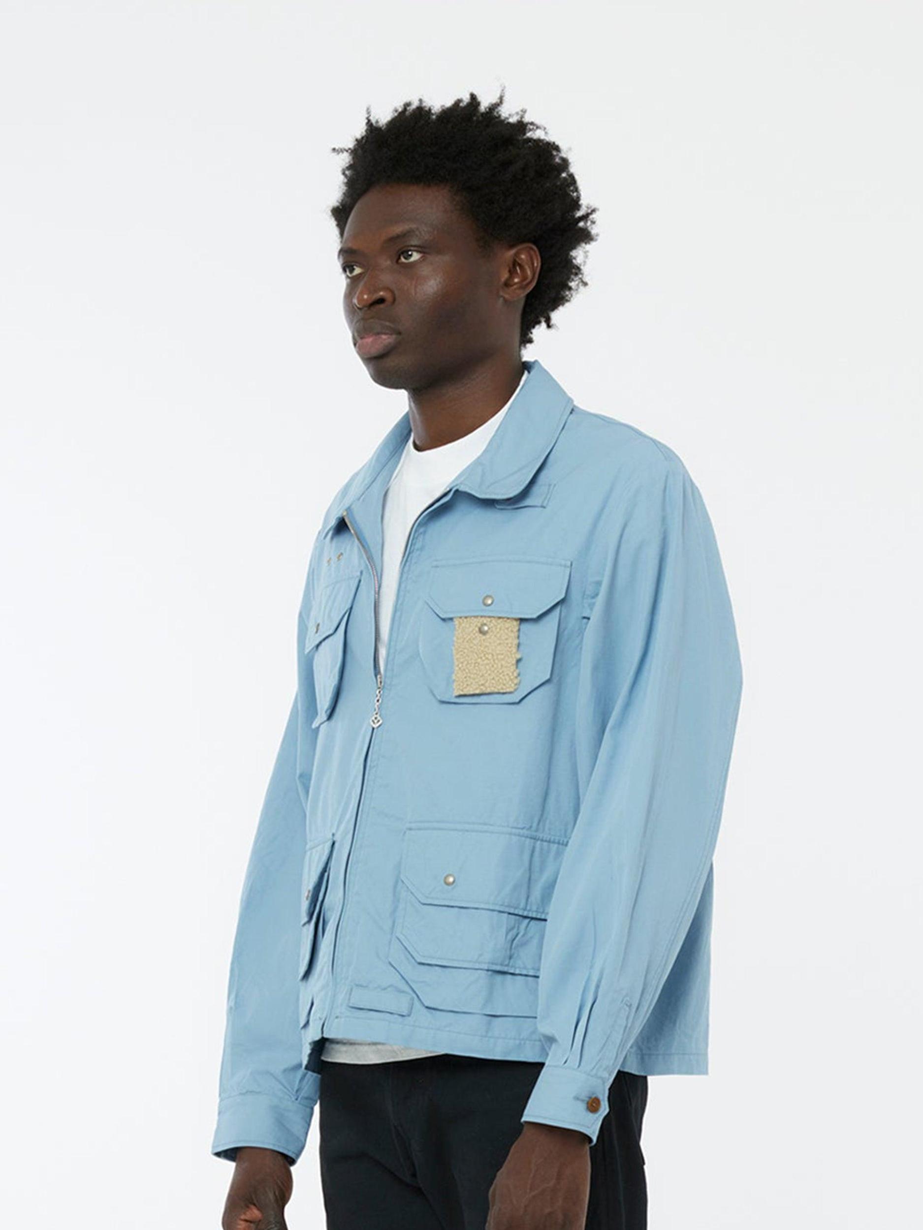 The Visvim Hemswade Jacket features a distinctive sheepskin patch detail, adding a rustic charm and individuality to the piece. Made entirely from 100% cotton, this jacket also features custom RiRi zip fastener, vegetable ivory buttons, and custom snap buttons. Model is 6'2 wearing size 3