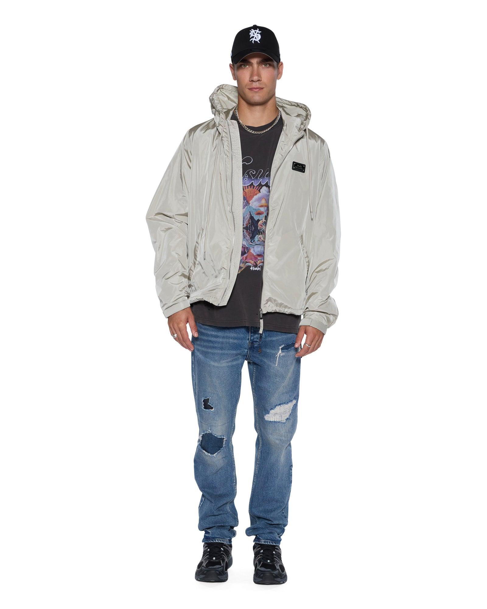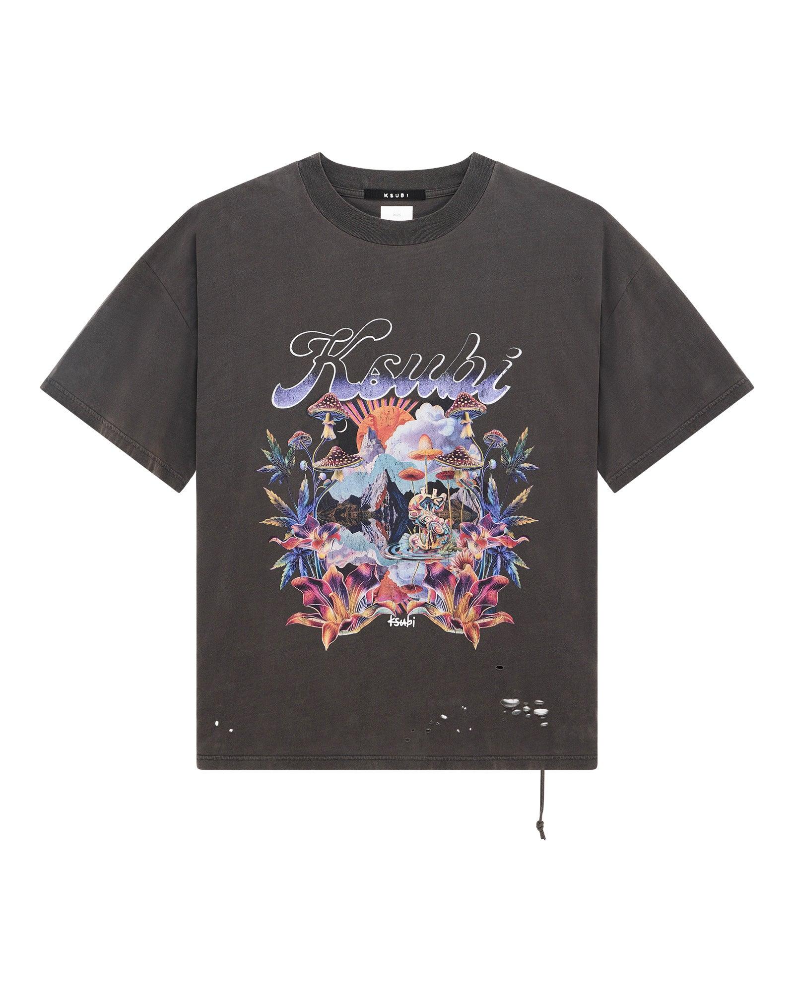 The Hendrix Ekcess Ss Tee Old Black is a boxy oversized fitting short sleeve t-shirt with a dropped shoulder and raw cut back hem. Detailed with a reversed overlocked side seam, signature rats tail, and branded logos. Made from a European heavyweight cotton jersey garment dyed Old Black. Featuring seasonal printed artwork at the front and finished with T-box and 4x4 embroidery branding.