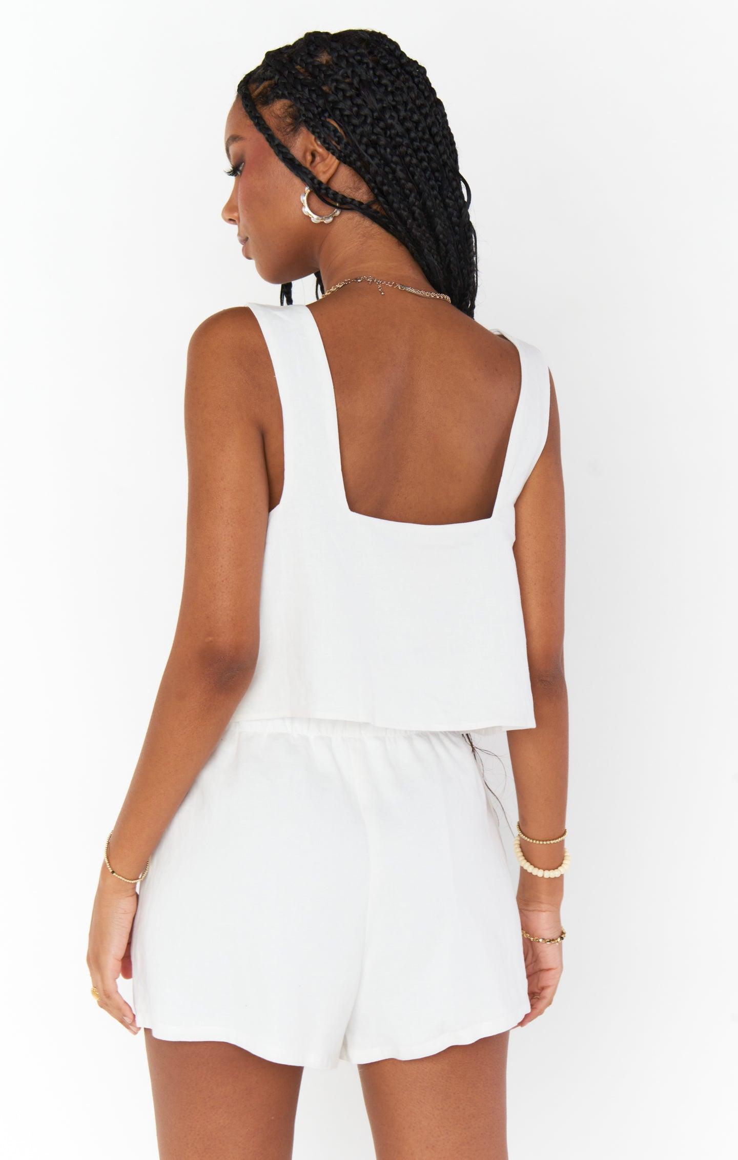 These easy white linen shorts have a flattering high waist and flowy fit making them super easy to throw on, tuck in your fave tee, or pair with our matching Parker Button Down Shirt!
