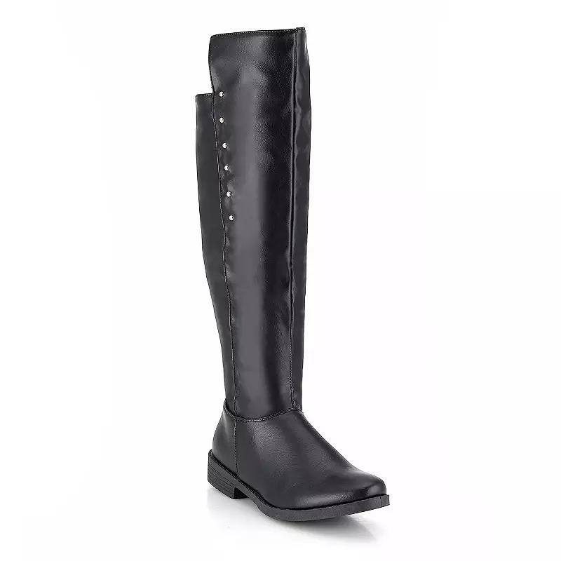 These sleek and stylish Bistro 100 tall riding boots by Henry Ferrera are sure to turn heads. These sleek and stylish Bistro 100 tall riding boots by Henry Ferrera are sure to turn heads.BOOT FEATURES Over-the-knee design Zipper for easy on and off Block heelBOOT CONSTRUCTION Faux patent leather upper Manmade lining and outsoleBOOT DETAILS Round toe Zipper closure Padded footbed 1-in. heel 1-in. platform height 1-in. extender 23-in. shaft 15-in. circumference This product may contain chemicals known to the state of California to cause canccer or birth defects or other reproductive harm. Do not place in mouth or chew. For more information go to http://www.p65warnings.ca.gov/. Size: 7. Color: Black. Gender: female. Age Group: adult.