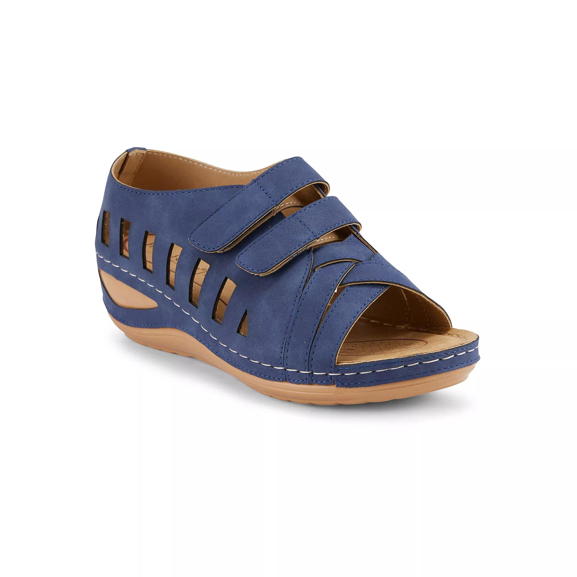 Add a bold and chic accent that will complete any look with these Henry Ferrera Comfort 19 wedge sandals.Click this FOOTWEAR GUIDE to find the perfect fit and more! SHOE FEATURES Perforated detail upper and strappy design Durable traction sole and wedge heelSHOE CONSTRUCTION Polyurethane upper Manmade lining & outsoleSHOE DETAILS Open toe Slip-on Padded footbed 1-in. platform height 1-in. heel This product may contain chemicals known to the state of California to cause cancer or birth defects or other reproductive harm. Do not place in mouth or chew. For more information go to www.P65Warnings.ca.gov Size: 7. Color: Navy. Gender: female. Age Group: adult.