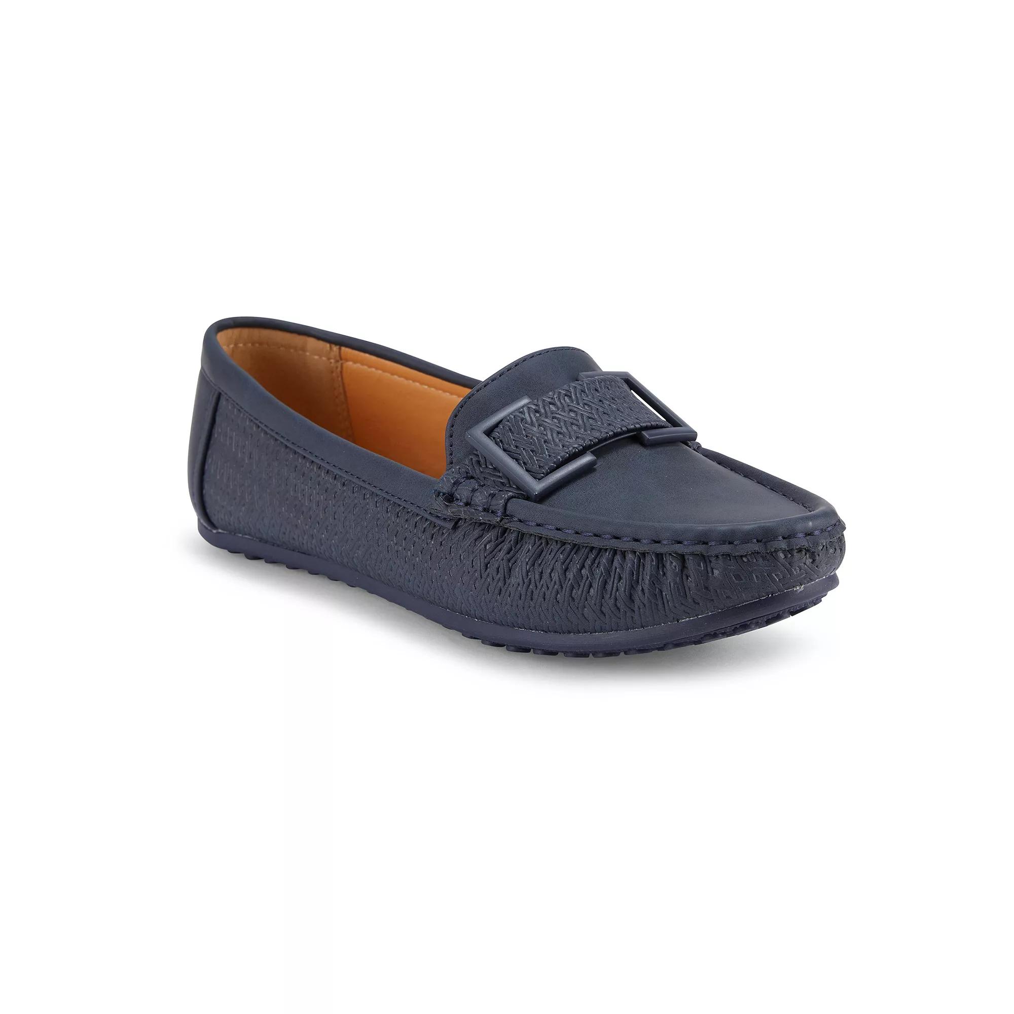 Add a bold and comfortable fit with these Henry Ferrera Comfort E flats. SHOE FEATURES Metal embellishments and pattern detail Durable traction sole and comfort footbedSHOE CONSTRUCTION Polyurethane upper Manmade lining & outsoleSHOE DETAILS Round toe Slip-on Padded footbed 1-in. platform height This product may contain chemicals known to the state of California to cause cancer or birth defects or other reproductive harm. Do not place in mouth or chew. For more information go to www.P65Warnings.ca.gov. Size: 10. Color: Navy Blue. Gender: female. Age Group: adult.