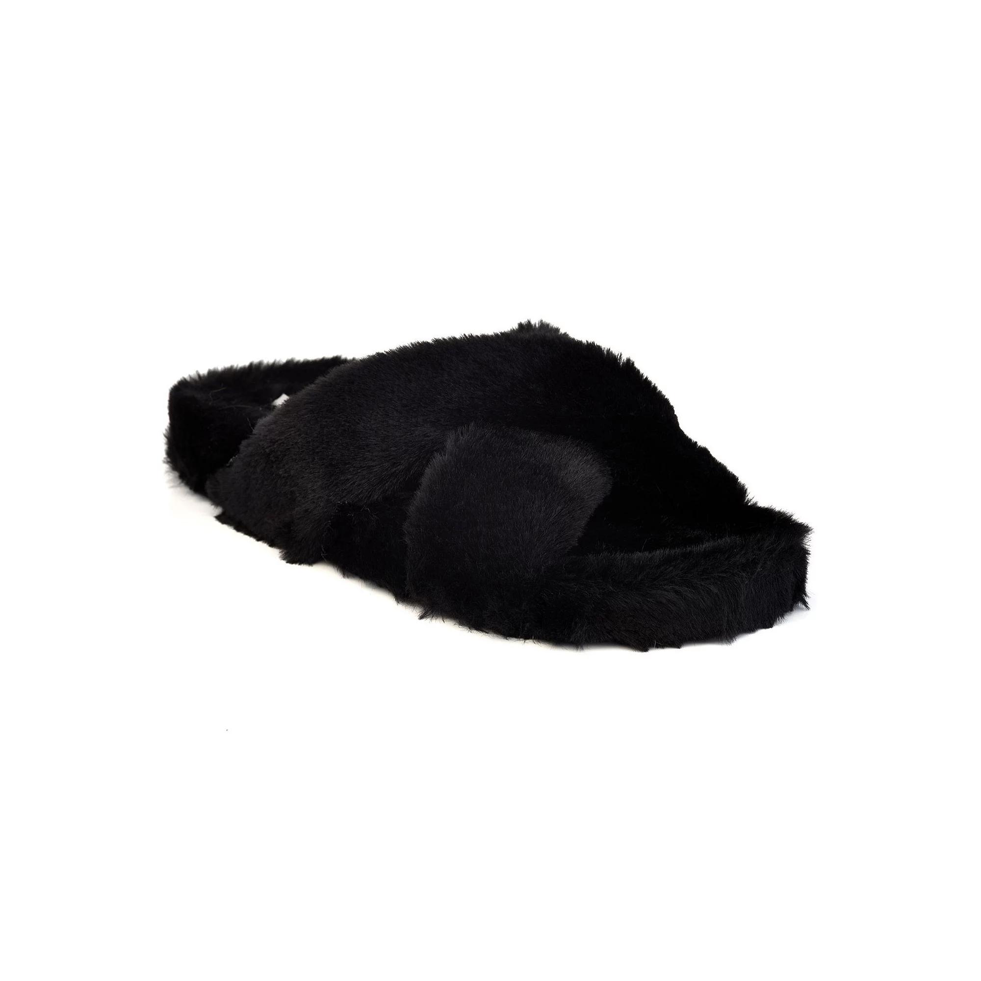 Step into plush style with these Henry Ferrera Comoda 100 faux-fur slippers. Step into plush style with these Henry Ferrera Comoda 100 faux-fur slippers.Click this FOOTWEAR GUIDE to find the perfect fit and more! SLIPPER FEATURES Crisscross strap upper Soft faux-fur designSLIPPER CONSTRUCTION Faux fur upper and lining Synthetic insole Manmade outsoleSLIPPER DETAILS Open toe Slip-on Padded footbed This product may contain chemicals known to the state of California to cause canccer or birth defects or other reproductive harm. Do not place in mouth or chew. For more information go to http://www.p65warnings.ca.gov/. Size: 9. Color: Black. Gender: female. Age Group: adult.