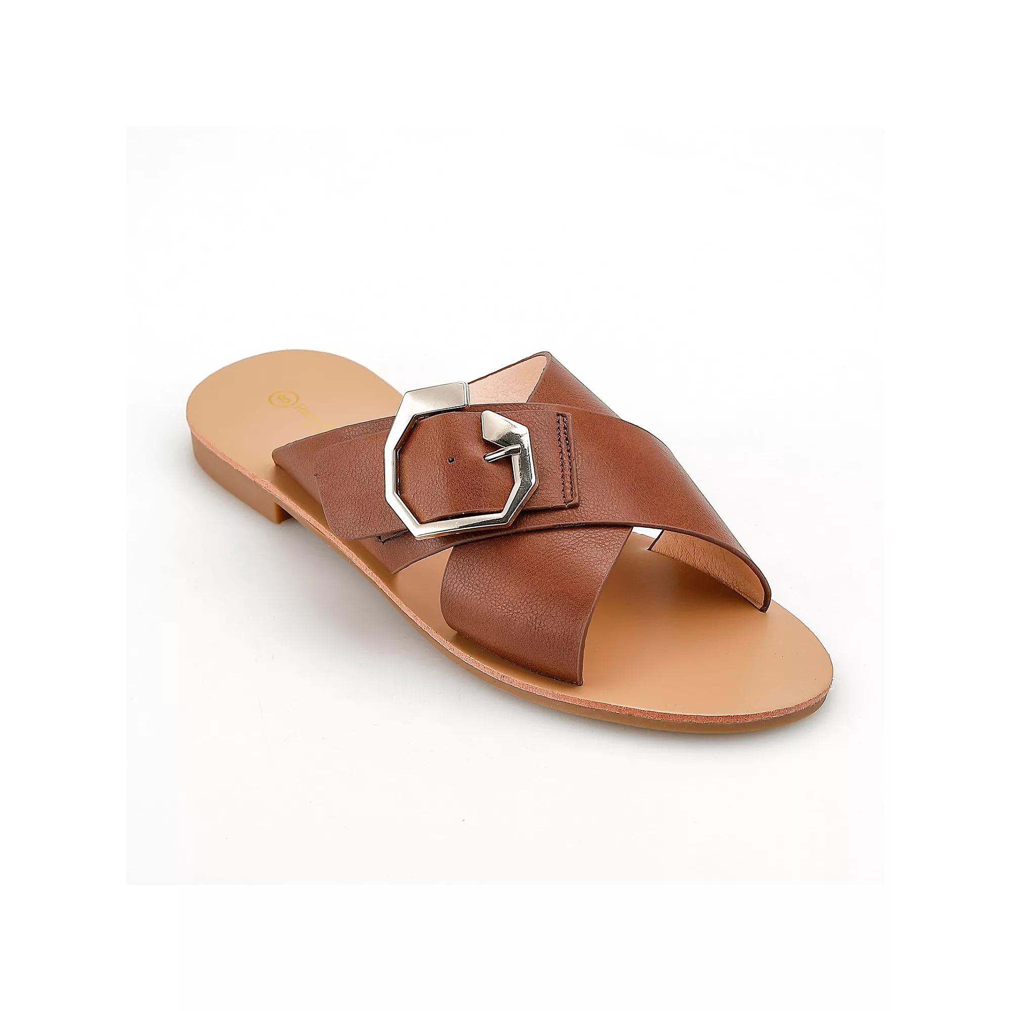 Embrace effortless style with these chic flat comfort sandals, perfect for all your spring and summer adventures. Designed by Henry Ferrera, they combine a fashionable look with all-day comfort, making them your go-to choice for sunny outings and casual gatherings. Size: 7.5. Color: Cognac. Gender: female. Age Group: adult. Material: SYNTHETIC.