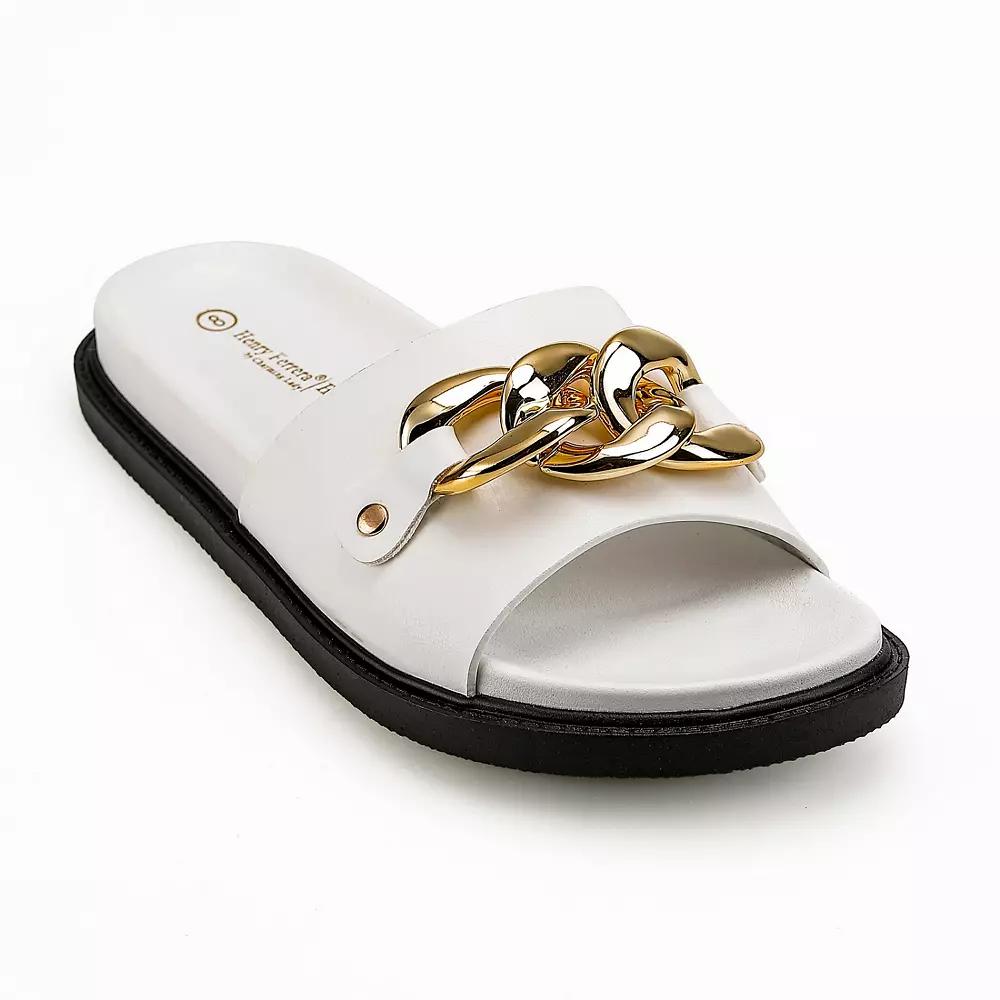 Feel comfy and classy in these Henry Ferrera Open Toe Women's Flat Sandals. Click this FOOTWEAR GUIDE to find the perfect fit and more! - https://www.kohls.com/feature/shoesizeguide.jsp. SANDAL FEATURES: Bulky buckle, Slip on for easy on off. SANDAL CONSTRUCTION: Faux leather upper, Manmade (PU) lining, TPR outsole. SANDAL DETAILS: Round toe, Polyurethane footbed, Flat sole, Slip-on,. WARNING: This product may contain chemicals known to the state of California to cause cancer or birth defects or other reproductive harm. Do not place in mouth or chew. For more information go to www.P65Warnings.ca.gov - https://www.p65warnings.ca.gov/. Size: 9. Color: White. Gender: female. Age Group: adult. Material: SYNTHETIC.